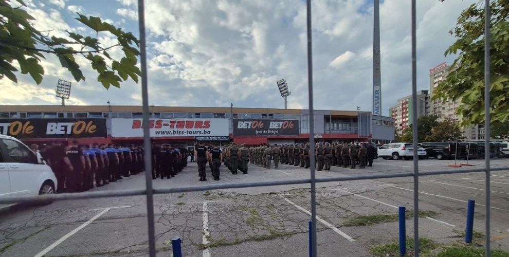 Velike su mjere obezbjeđenja za ovu utakmicu, a kamera našeg urednika zabilježila je postrojavanje policije i zaštitara prije današnjeg meča.
