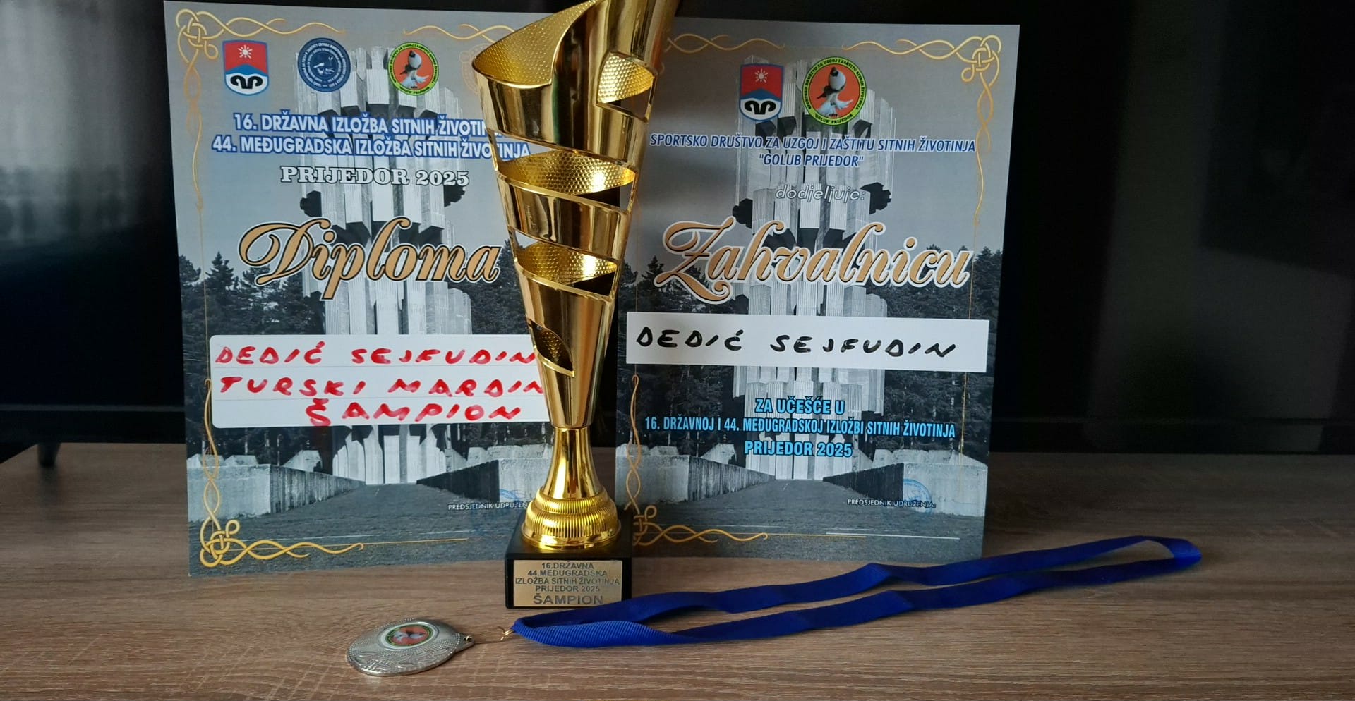 Veliki uspjeh Sejfudina Dedića na državnoj izložbi u Prijedoru- Na državnoj izložbi održanoj od 28. do 30. novembra 2025. godine u Prijedoru zabilježen je izuzetan uspjeh Sejfudina Dedića, koji je osvojio titulu šampiona, kao i posebnu nagradu organizatora. Kako navodi Dedić, nagrada predstavlja rezultat dugogodišnjeg truda, predanosti i ljubavi prema uzgoju.
