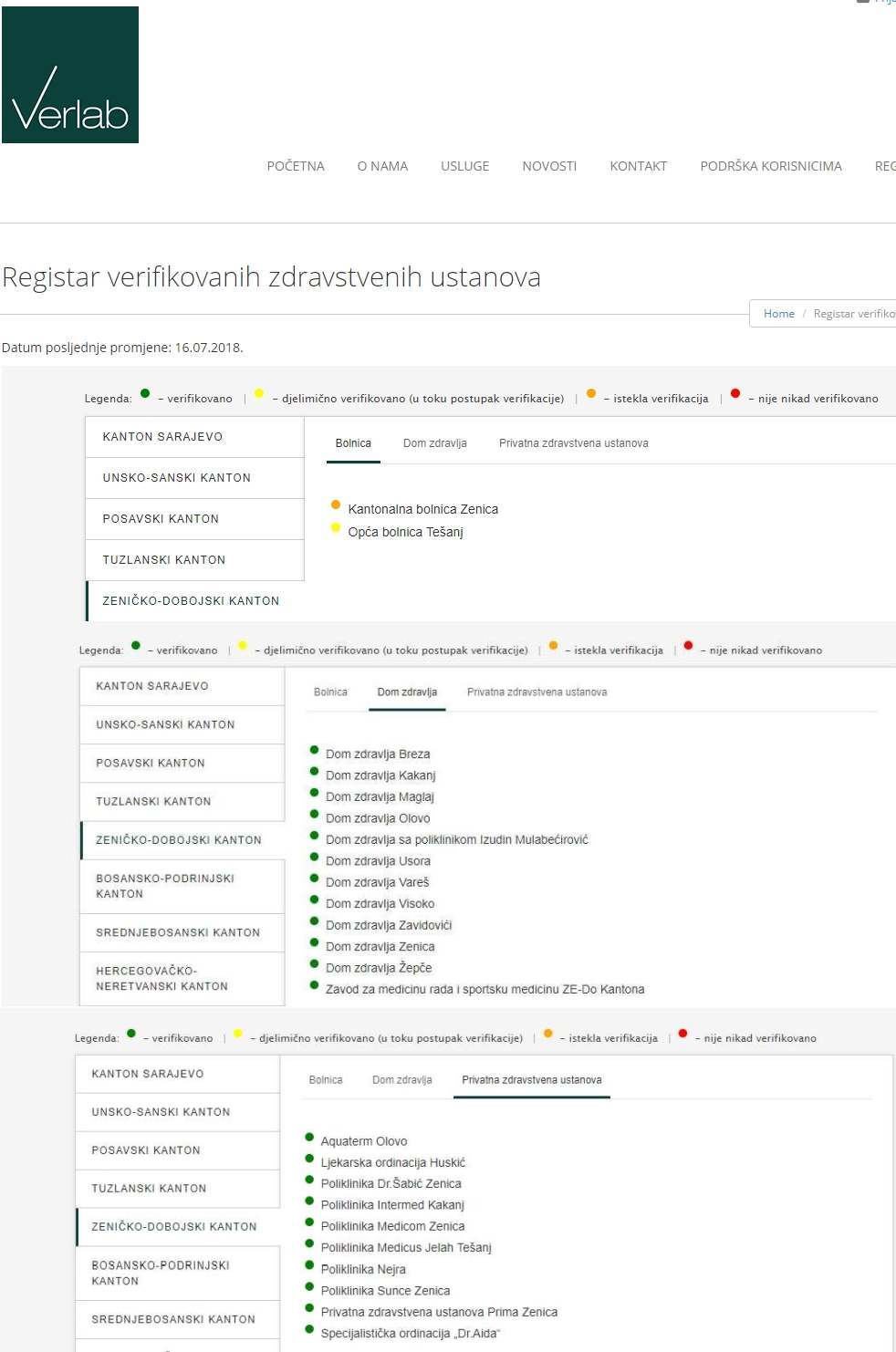 Pogledajte stanje opreme u ustanovama u ZDK dostupni svi kantoni i ustanove na LINKU Registar verifikovanih zdravstvenih ustanova BiH: