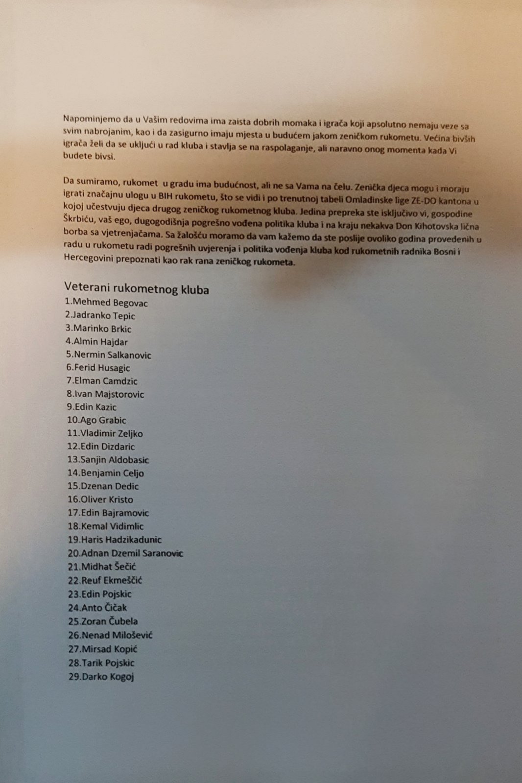 - Napominjemo da u Vašim redovima ima zaista dobrih momaka i igrača koji apsolutno nemaju veze sa svim nabrojanim, kao i da zasigurno imaju mjesta u budućem jakom zeničkom rukometu. Većina bivših igrača želi da se ukljući u rad kluba i stavlja se na raspolaganje, ali naravno onog momenta kada Vi budete bivsi.