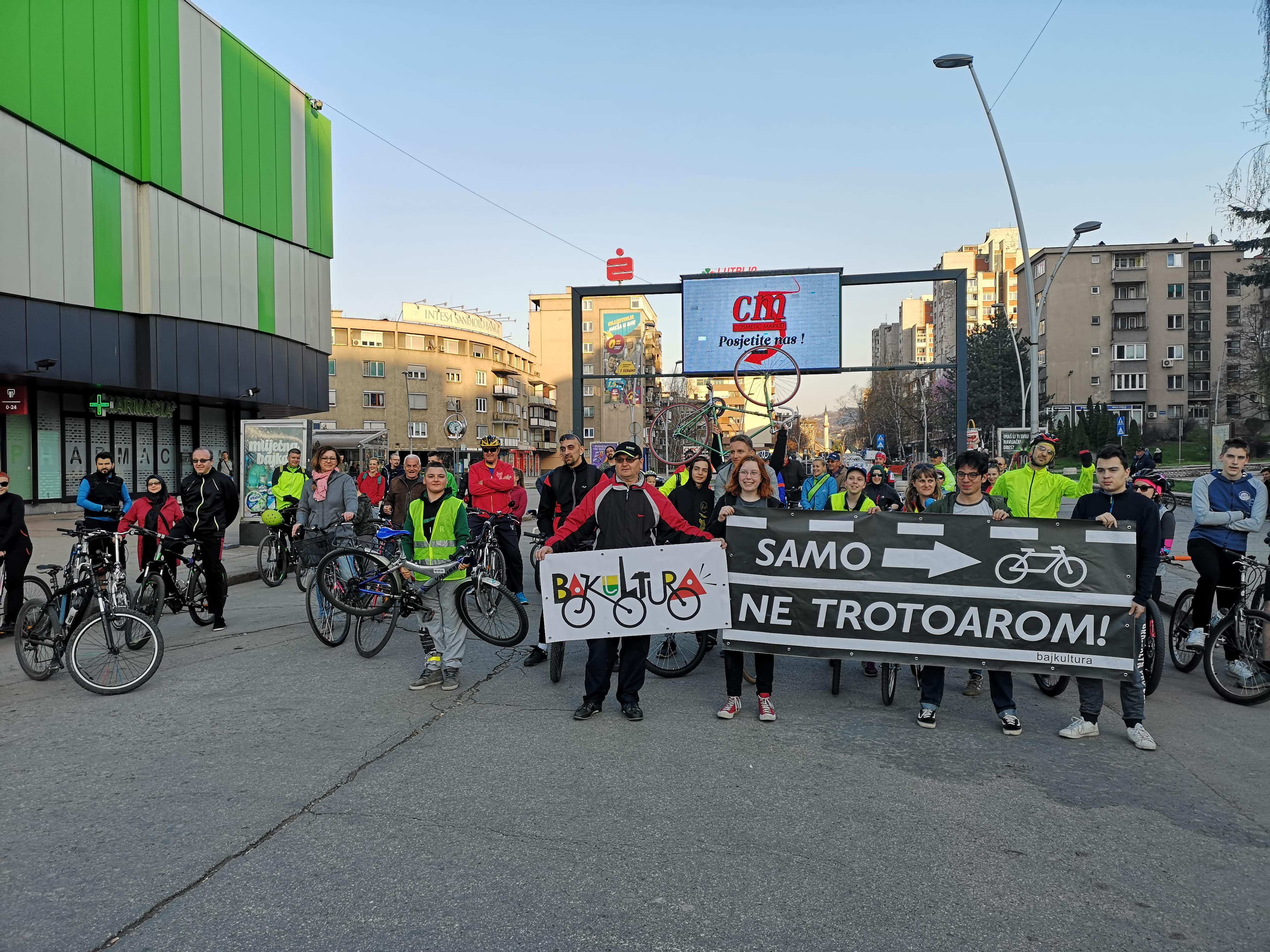 Aktivisti pokreta Bajkultura, sekcije Udruženja mladih “Priroda i društvo” koja za cilj ima razvoj biciklističke infrastrukture u Zenici i promociju bicikla kao modela održive urbane mobilnosti, organizovali su protekli vikend na zeničkom bulevaru simboličnu uličnu akciju pod nazivom “Samo ne trotoarom”, u sklopu realizacije istoimene kampanje.