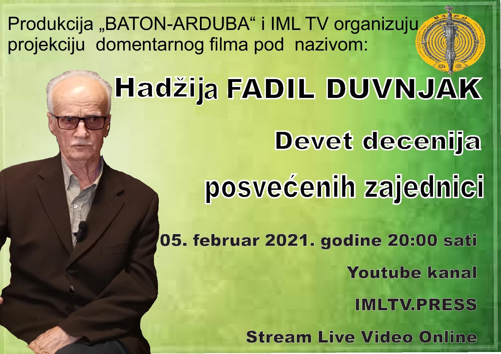 VIDEO: Batonovi muhabeti- dokumentarni film Fadil Duvnjak- devet decenija posvećenih zajednici- U cilju isticanja historijskih događaja i znamenitih ličnosti Bosne i Hercegovine, produkcija „BATON-ARDUBA“ i IML TV , organizovali su projekciju dokumentarnog filma pod nazivom: