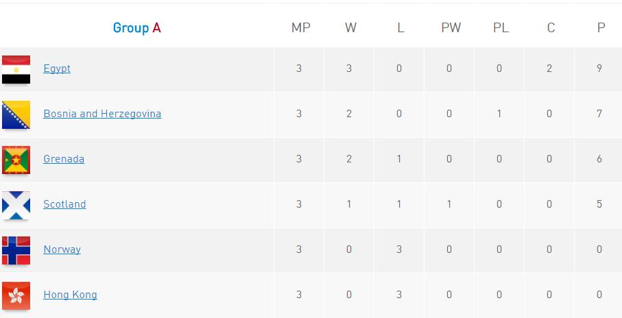 Prva protiv Grenade počinje u 13:00 h i igra se na terenu 2, a druga protiv Egipta u 17:00 h na terenu 3. U drugu grupnu fazu SP-a plasirati će se po tri prvoplasirane ekipe iz svake od 8 grupa. Dok slabije rangirani razigravaju za poredak od 25 do 48 mjesta.