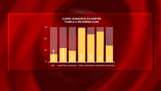 – Mi smo nedavno dodijelili posao za izgradnju tunela Zenica i Ivan. Mi smo posao na izgradnji tunela Zenica, koji će imati dvije cijevi, koji će biti potpuno opremljen elektro-mašinskom opremom (ventilacija, rasvjeta, video nadzor… op.a.), a koji je dug 2,6 kilometara, za 59,5 miliona eura. S obzirom da će se graditi dvije cijevi, to znači da će biti izgrađeno 5,2 kilometra tunela, onda dobijete da je cijena izgradnje 11 milioan eura po kilometru, full opremljenog tunela. Prije oko mjesec dana Slovenija je dodijelila posao za izgradnju tunela Karavanke i to jednu cijev bez ijednog elektro-mašinskog dijela, a to će platiti 28 miliona eura po kilometru – istakao je Terzić.