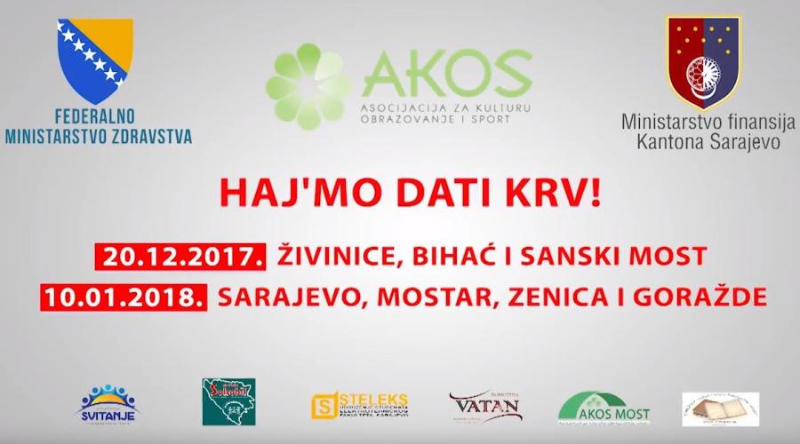 U sklopu ovog projekta koji realizuje AKOS biće organizovane akcije darivanja krvi u sedam gradova, a urađen je i promotivni video: