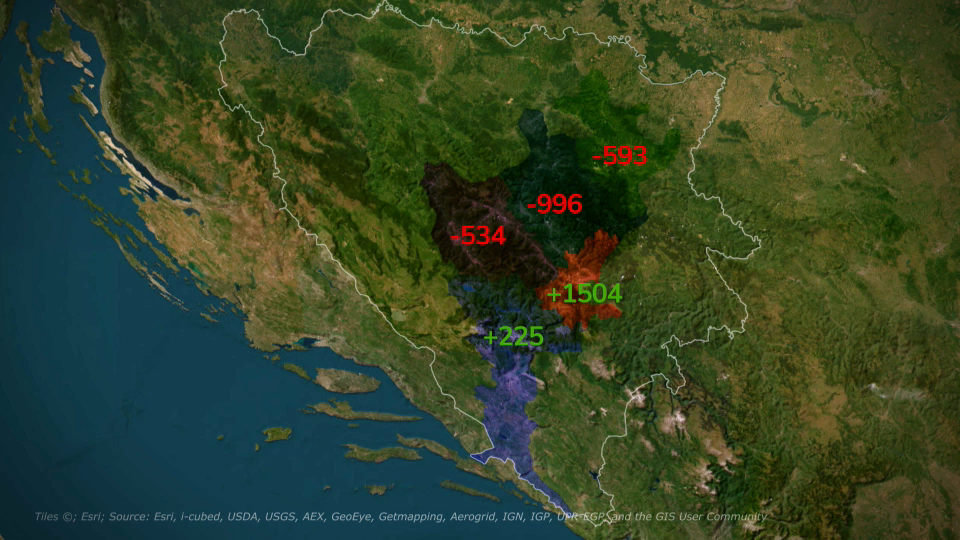 Najveći negativni efekti pokazali su se u Zeničko-dobojskom kantonu gdje je skoro hiljadu radnika manje u odnosu na 2024. godinu. Otkazi su primjetni i u Tuzlanskom kantonu, kao i u Srednjobosanskom. Dok šest kantona bilježi gubitke radnih mjesta, broj radnika veći je u Kantonu Sarajevo i to za 1500, te u Hercegovačko-neretvanskom za 225.