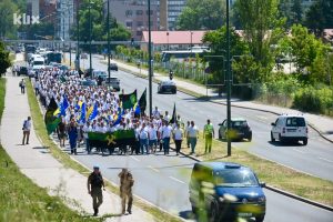 Oni su u koloni prošetali od željezničke stanice do zgrade vlade, a protesti su počeli himnom Bosne i Hercegovinom. Saobraćaj je u ulici Hamdije Čemerlića obustavljen.