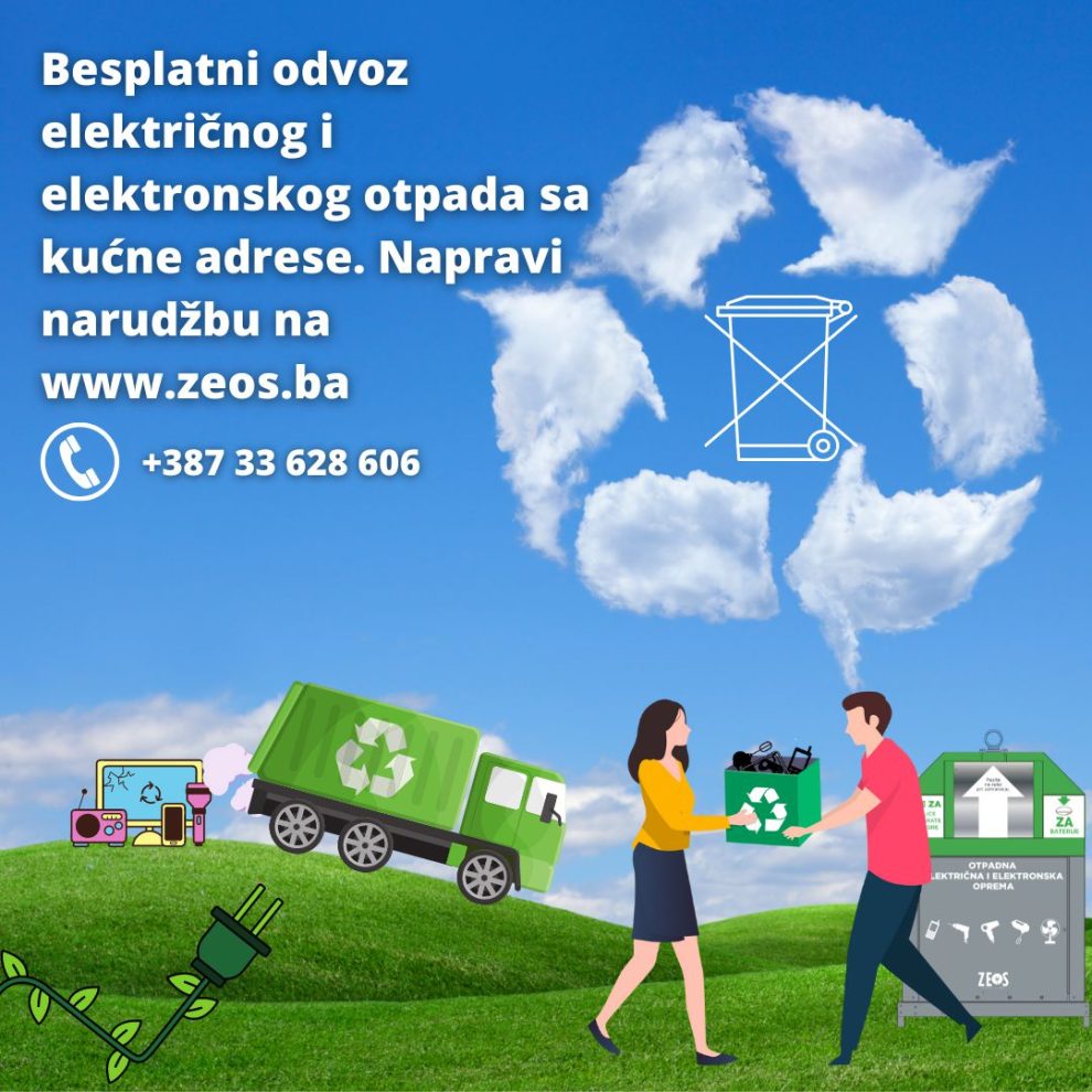 VIDEO: Građani od danas, preko ZEOS-a, mogu besplatno predati e-otpad sa kućne adrese- Projektna ideja Sakupljanje od vrata do vrata ima za cilj da omogući građanima novu besplatnu uslugu za zbrinjavanje električnog i elektronskog (elektro) otpada sa adrese, kako bi se što veće količine preusmjerile u reciklažni sektor putem ovlaštenog operatera ZEOS eko-sistem d.o.o.