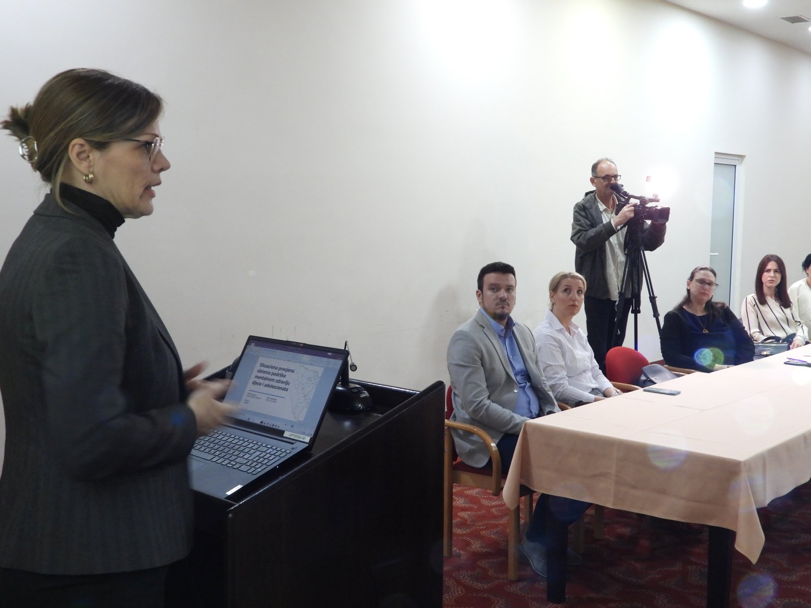Nakon uvodnog izlaganja i dobrodošlice prim. dr. Selvedine Sarajlić-Spahić iz INZ, učesnicima se obratila dr.spec. Jela Aćimović, šefica Sekcije za zdravlje UNICEF-a BiH, naglašavajući značaj međusektorske saradnje i sistemskog pristupa u jačanju mentalnog zdravlja djece i adolescenata.