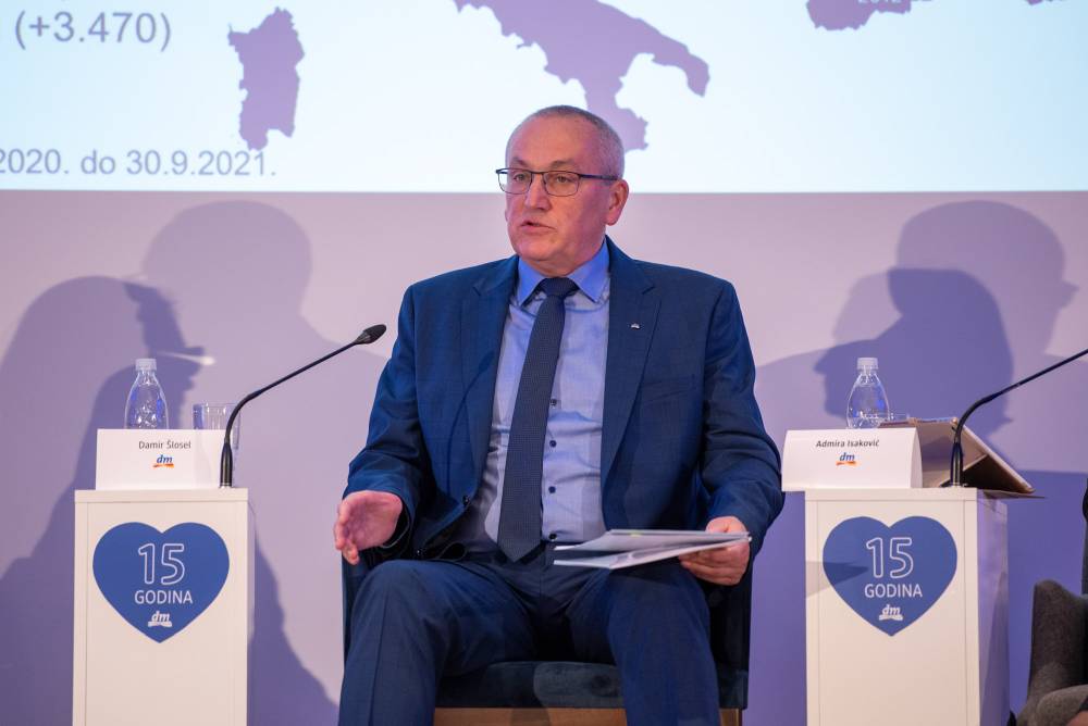 „Kontinuiran poslovni rast tokom godina omogućio nam je ulaganja u svim segmentima poslovanja. Tako je u protekloj poslovnoj godini investirano 7,8 miliona KM u centralu, distribucijski centar te preuređenja postojećih i otvorenja novih dm prodavnica čija je mreža narasla na 80 u cijeloj BiH. Osim toga ulagali smo i u proslavu jubileja, širenje asortimana, edukacije i zdravlje zaposlenika. Djelovali smo u pravcu unapređenja kvaliteta života cjelokupne zajednice u kojoj poslujemo kroz društveno odgovorne kampanje.“ – istaknuo je Damir Šlosel, direktor dm-a BiH.