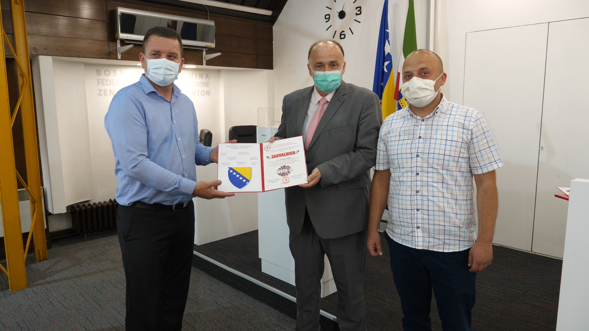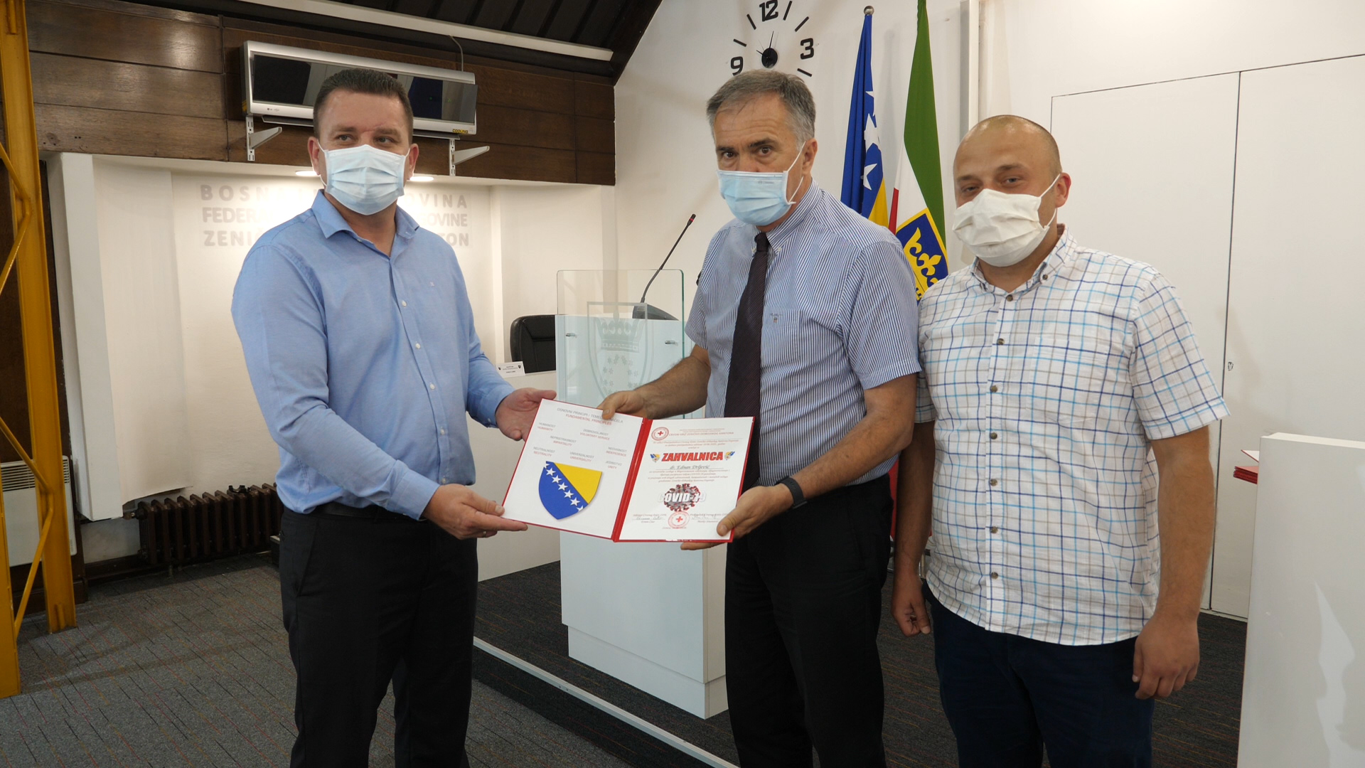 Zahvalnice je dobilo i troje Zeničana (majka, kćerka i zet), koji su bili prvi slučajevi infekcije koronavirusom u FBiH, a koji su se uspješno oporavili nakon bolničkog liječenja u Kantonalnoj bolnici Zenica.