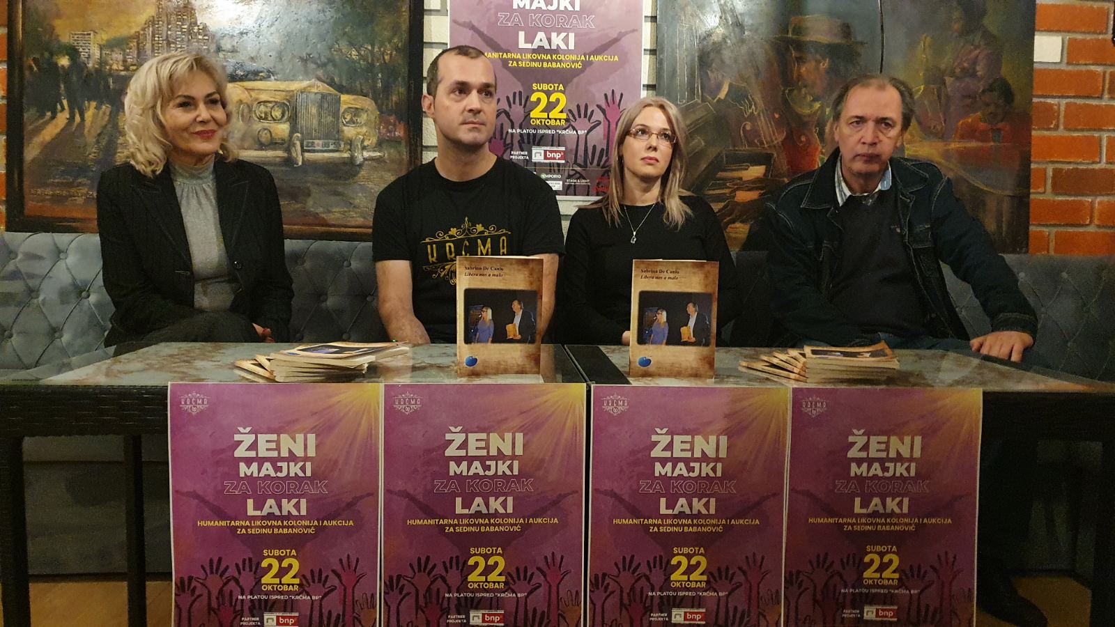 Zenički ugostitelji Ivana i Andrija Petrović, pokretači su humanitarne likovne kolonije i aukcije pod nazivom “Ženi – majki za korak laki”, kojom će u subotu, 22. oktobra prikupljati novčane priloge za zamjenu umjetnog kuka samohrane majke Sedine Babanović.