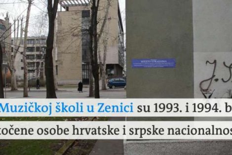 VIDEO: otkrivamo ko je i zašto postavio natpis na Muzičku školu u Zenici – Tokom četverogodišnjeg rata u BiH u pojedinim mjestima su škole, kulturni centri, kasarne, trgovi, hoteli… postali mjesta zločina. Mnoga ni do danas nisu obilježena iako su prošle 22. godine od završetka rata. Pogledajte prilog DW-a.