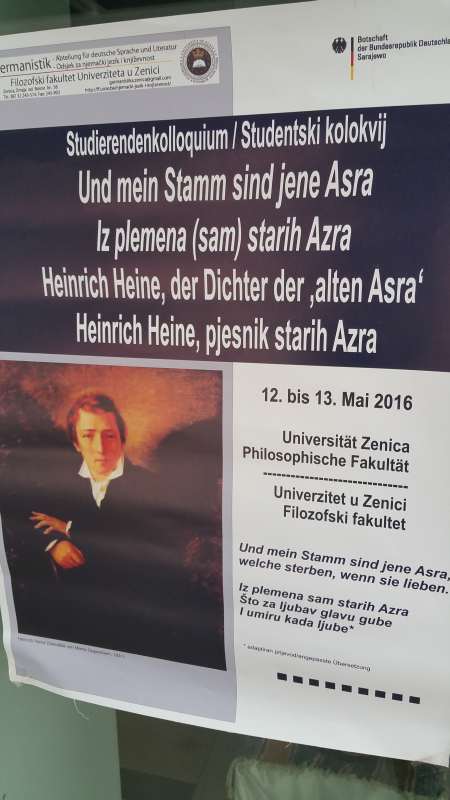 Ataše za kulturu u Njemačkoj ambasadi, Suzan Matis, svoje obraćanje javnosti posvetila je životu i djelu velikog njemačkog pjesnika Hajnrika Hajnea, jednog od najvećih pisaca u istoriji svjetske i evropske književnosti, ovdašnjoj javnosti poznatog i kao autora sevdalinke “Kraj tanana šadrvana”.
