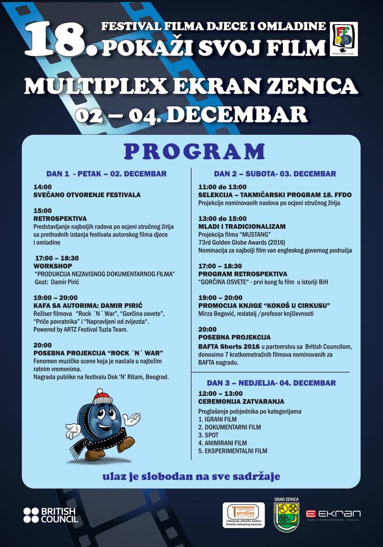 VIDEO: počeo 18. Festival filma djece i omladine – pogledajte raspored  – Udruženje za tehničku kulturu ZDK i  Multiplex  Ekran Zenica organizovali su 18. izdanje Festivala filma djece i omladine, koje je će trajati tri dana, a danas je svečano otvoreno u Zenici.