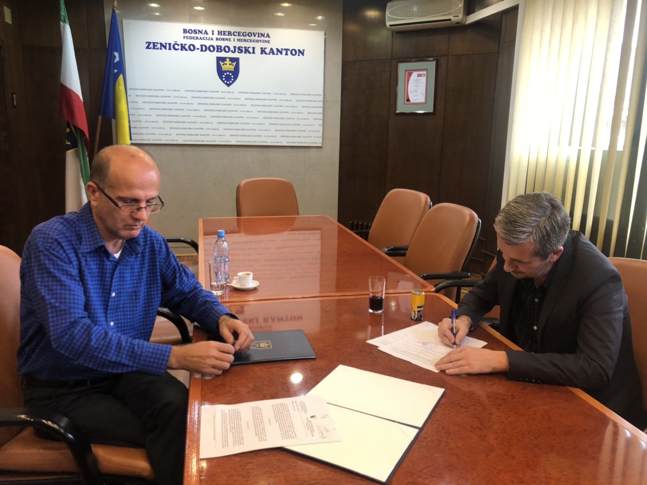 VIDEO: Potpisan ugovor za rekonstrukciju prve dionice puta Čajdraš-Ovnak – Milion KM za dionicu Čajdraš-Lokvine – Direktor Kantonalne direkcije za ceste Zeničko-dobojskog kantona Refik Zeković i direktor kompanije Almy Transport Zenica Jasmin Kalabić, u prisustvu premijera Miralema Galijaševića i vlasnika kompanije Besima Begića, potpisali su okvirni sporazum o rekonstrukciji dijela regionalne ceste Čajdraš-Ovnak na području grada Zenica. Rekonstrukcija prve dionice od Čajdraša do Lokvina, u dužini od dva kilometra, koštat će jedan milon maraka, a sredstva su opredijeljena u Budžetu za 2018. godinu.
