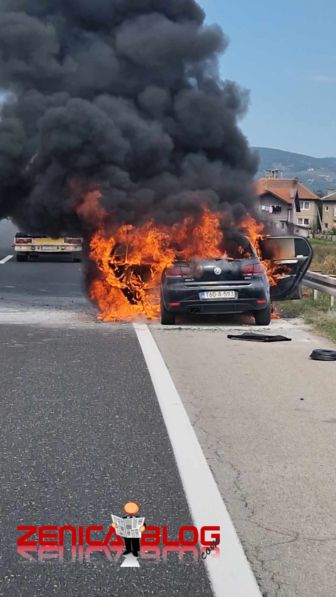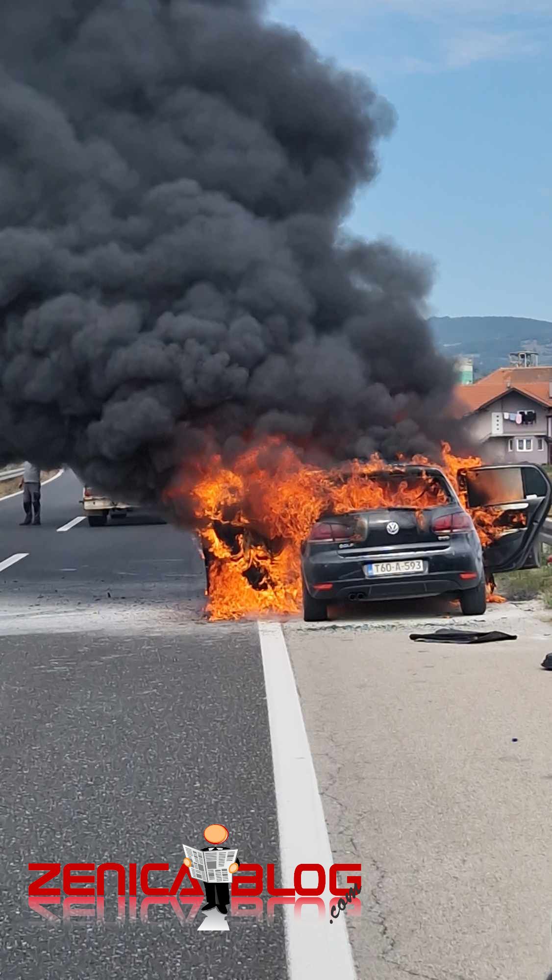 Na A1, dionica Sarajevo – Zenica, naši čitaoci su zabilježili požar na automobilu GOLF.