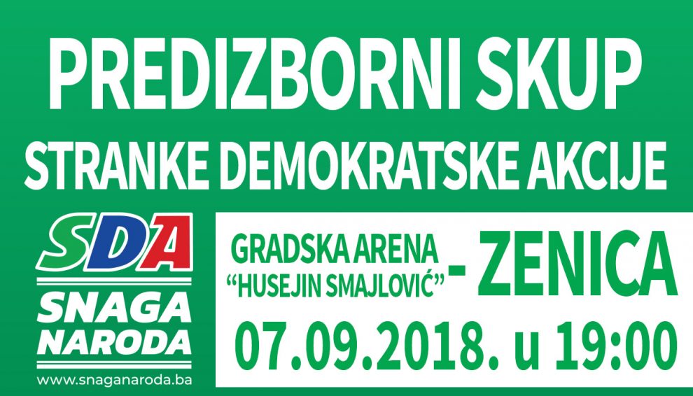 U Gradskoj areni “Husejin Smajlović” u petak 07. septembra sa početkom u 19 sati bit će održan veliki predizborni skup Stranke demokratske akcije.