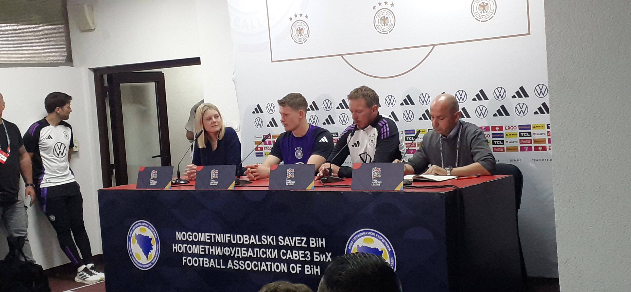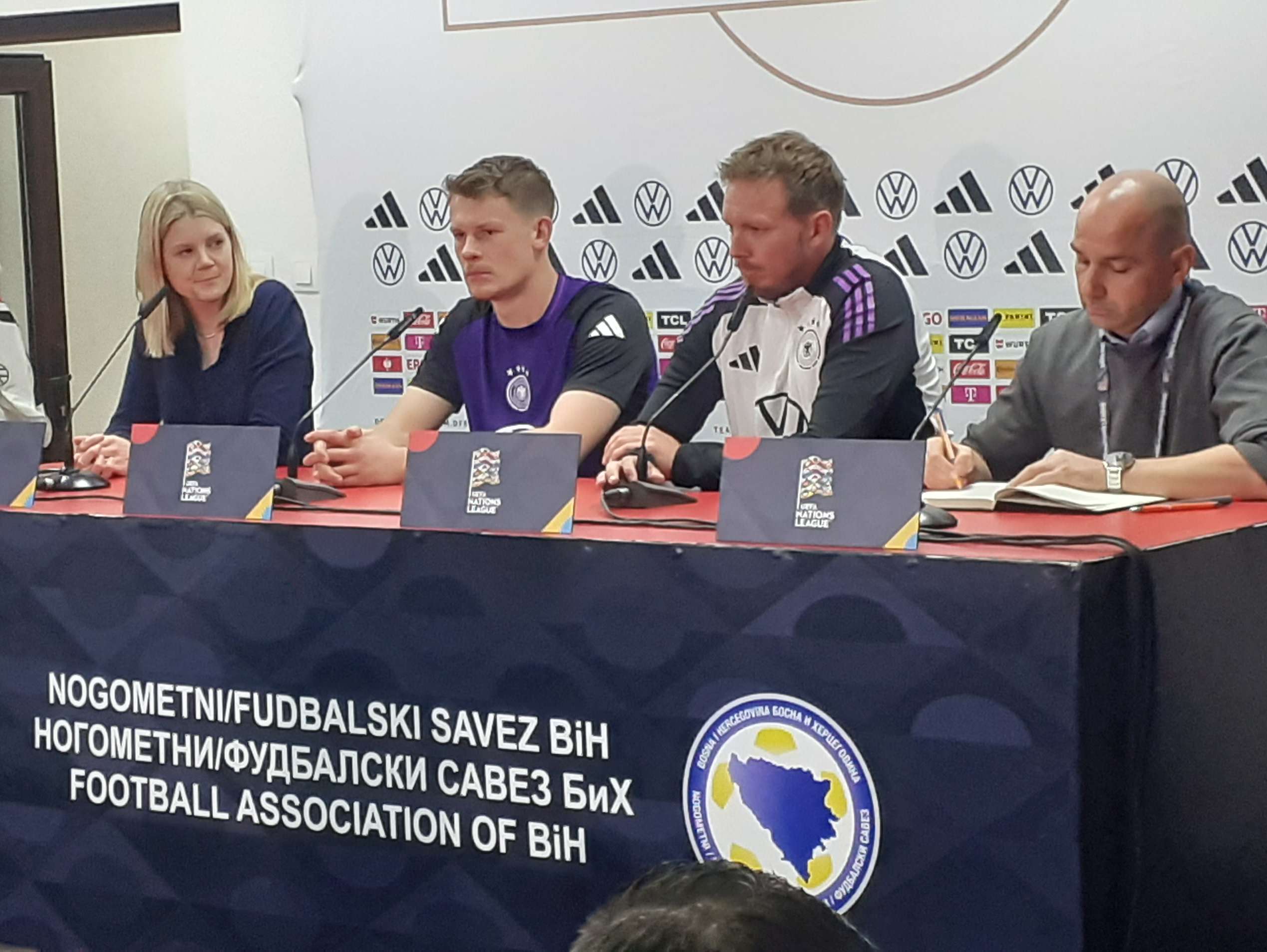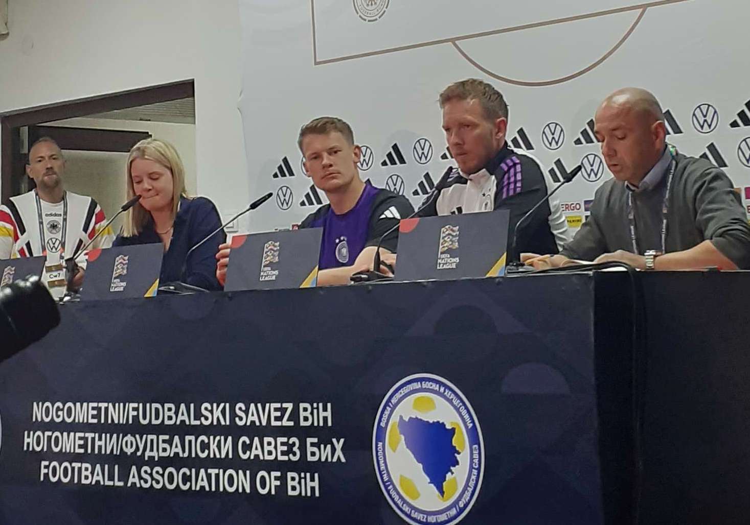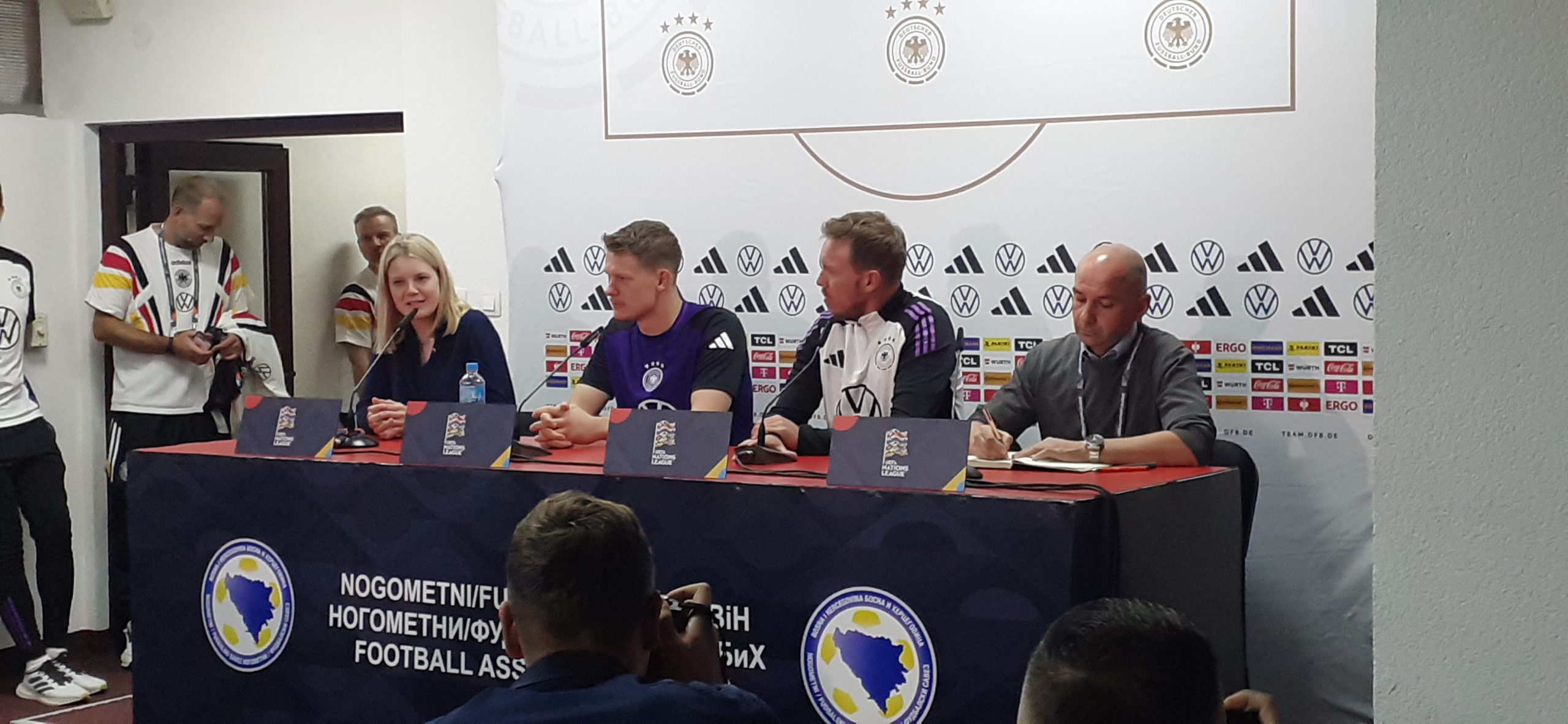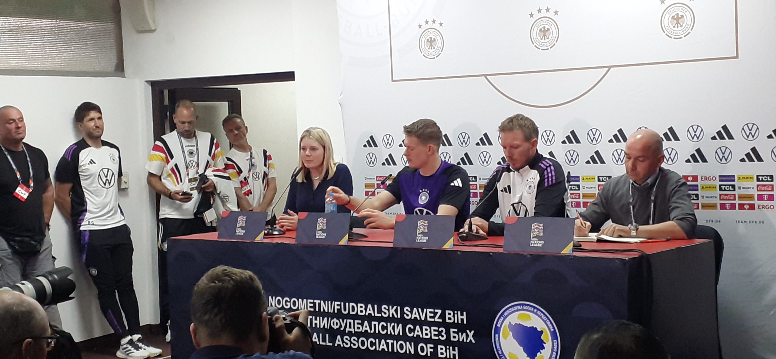 Tim povodom održana je press konferencija Njemačke u prostorijama stadiona Bilino Polje, a prisutnim novinarima obratili su se selektor Julian Nagelsmann te golman Alexadner Nubel.