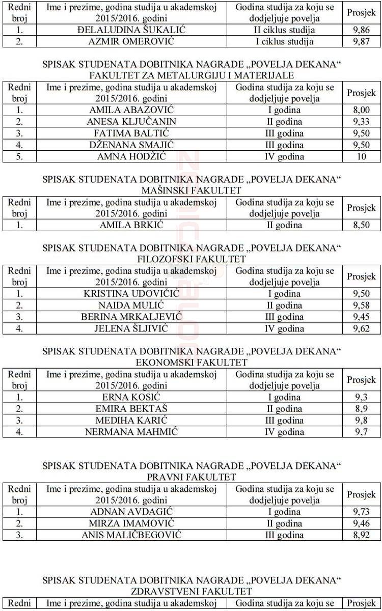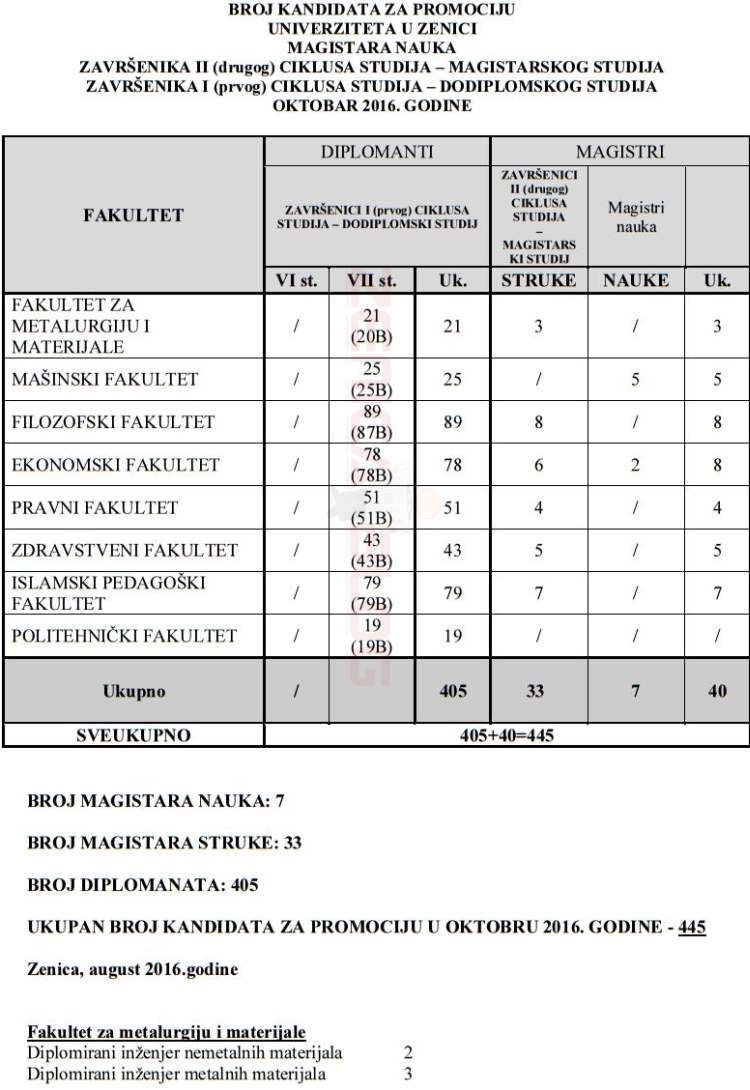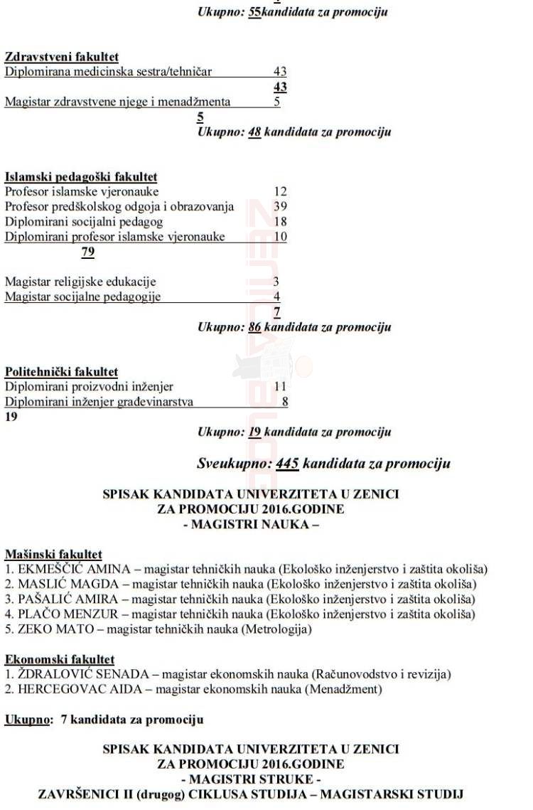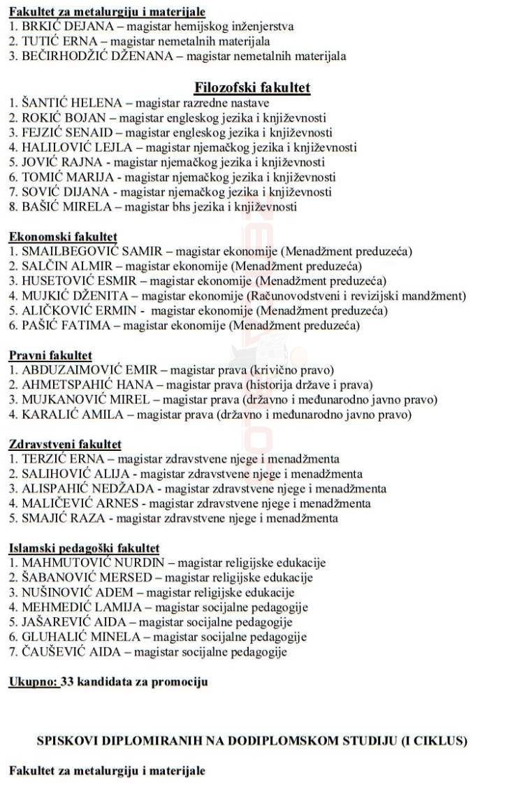 Zenicablog vam donosi cjelokupni spisak svih diplomanata i magistranata, kao i imena najboljih od najboljih, nagrađenih studenata, kao i foto galeriju i video snimak najzanimljivijih dijelova cijele manifestacije. Uživajte.