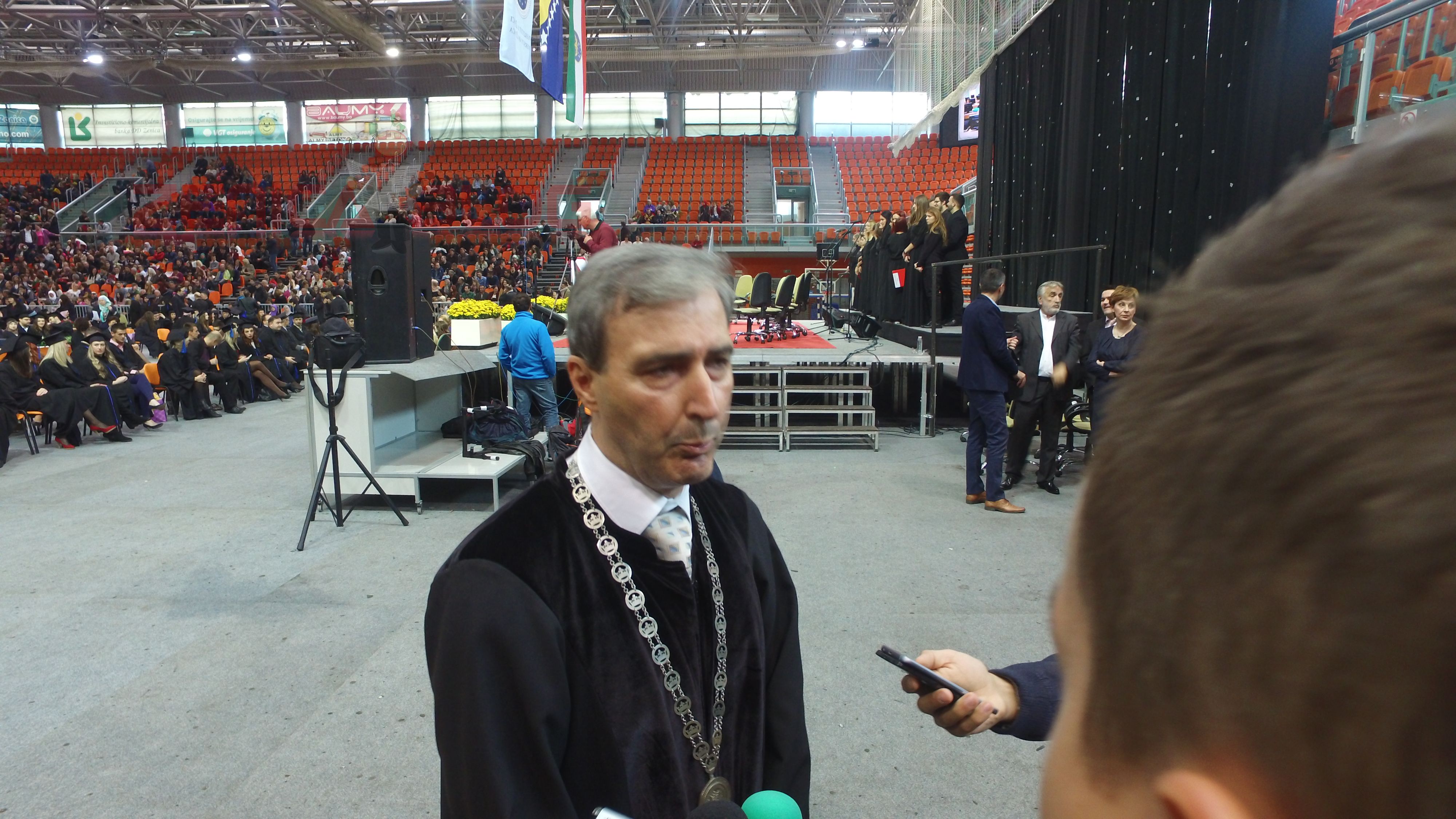 “Vi ćete sutra naslijediti nas na našim radnim mjestima, društvenim aktivnostima i na svim poljima rada. Kada analiziramo podatke mladih ljudi koji su u 16 godina stekli diplome na Univerzitetu u Zenici, vidimo da je osnivanje univerziteta bilo opravdano. Danas u ovom zdranju prisutno je 445 mladih ljudi sa diplomom u rukama, i siguran sam da će neki nastaviti svoj put ka titulama magistra ili doktora nauka”, rekao je Galijašević.
