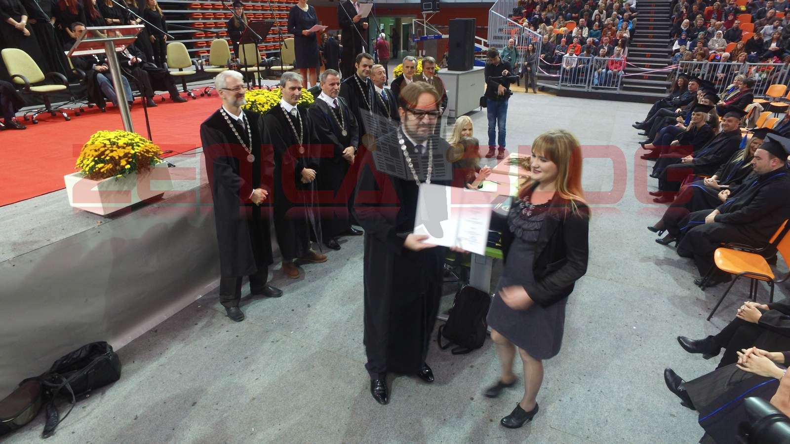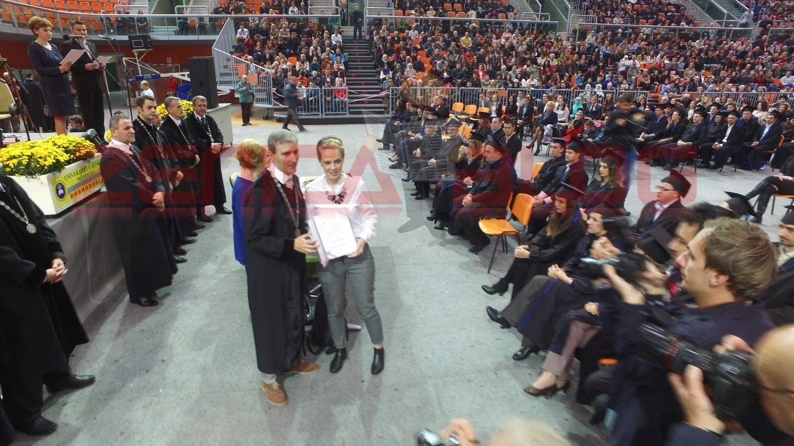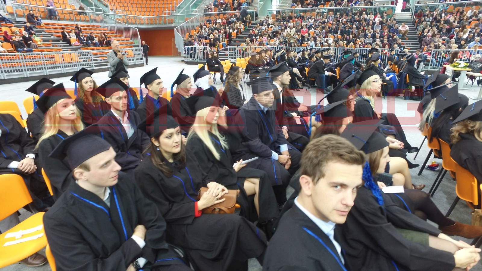 Diplome diplomantima uručili su dekani i osoblje studentskih službi. Cijeli program je okončan čitanjem svečane izjave, koju su za rektorom ponavljali diplomanti i magistranti, a sada već bivši studenti su pozvani da iskažu svoju radost bacanjem svečanih kapa u zrak.