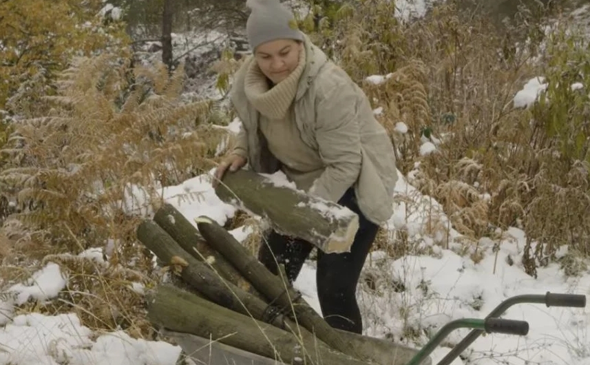 Muž je teško bolestan, leži u krevetu, a dijete ide u školu. Esada, kada nema drugih svakodnevnih poslova, ide u šumu i motornom pilom siječe drva. Nakon toga ih natovari na leđa i krene kući. Ponekad se nađu ručna kolica i drva dovezu u kuću gdje se ponovno režu i spremaju za zimu.
