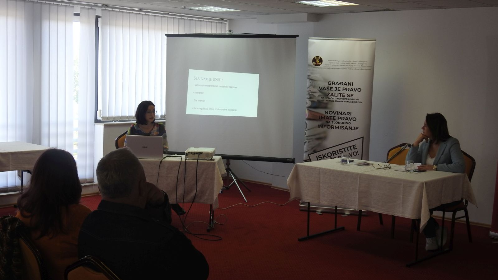 Predstavnica Vijeća za štampu i online medije Mirjana Jovović podsjetila je na Kodeks za štampane i online medije BiH i transparentnost online medija, a izlagala je na temu „Žalbena procedura i uloga Žalbene komisije vijeća za štampu i online medije u BiH“.