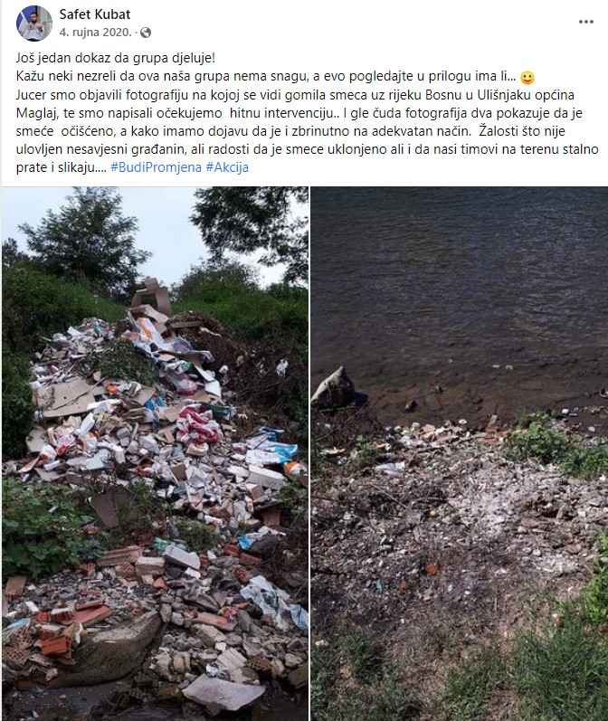 – Uz cijeli taj proces educirali smo građane kako i kome oni mogu da prijave i na koncu da budu i oni sami ta promjena. To je izazvalo veliku viralnost objava na grupi pa su ubrzo došle i veće organizovane aktivnosti grupe koje su uključivale masovne akcije čišćenja, kaže Kubat.
