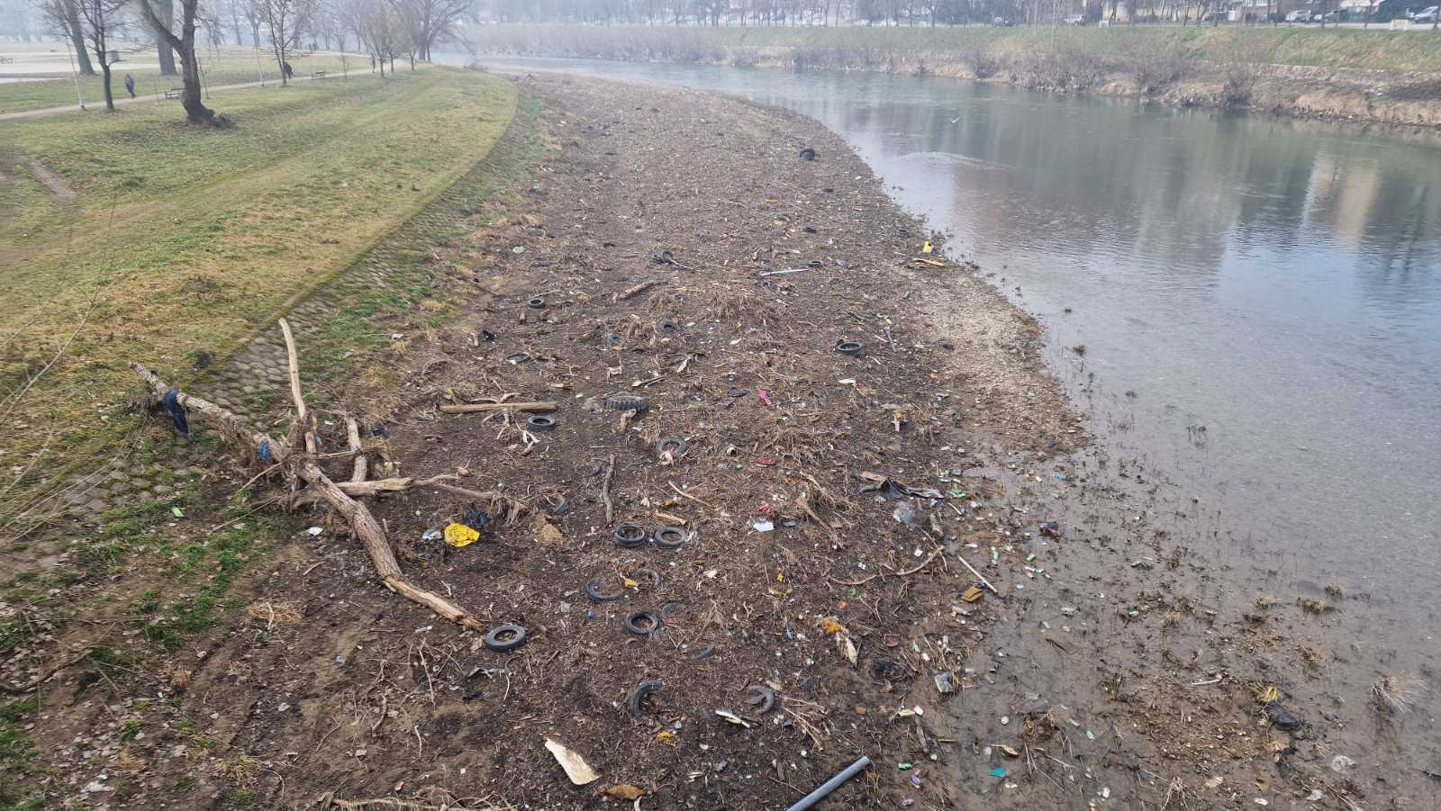 Već mjesecima na desnoj obali rijeke Bosne, na lokalitetu Kamberovića polja stotine automobilskih guma i velike količine otpada “ukrašavaju” obalu uz najveći gradski park u Zenici.