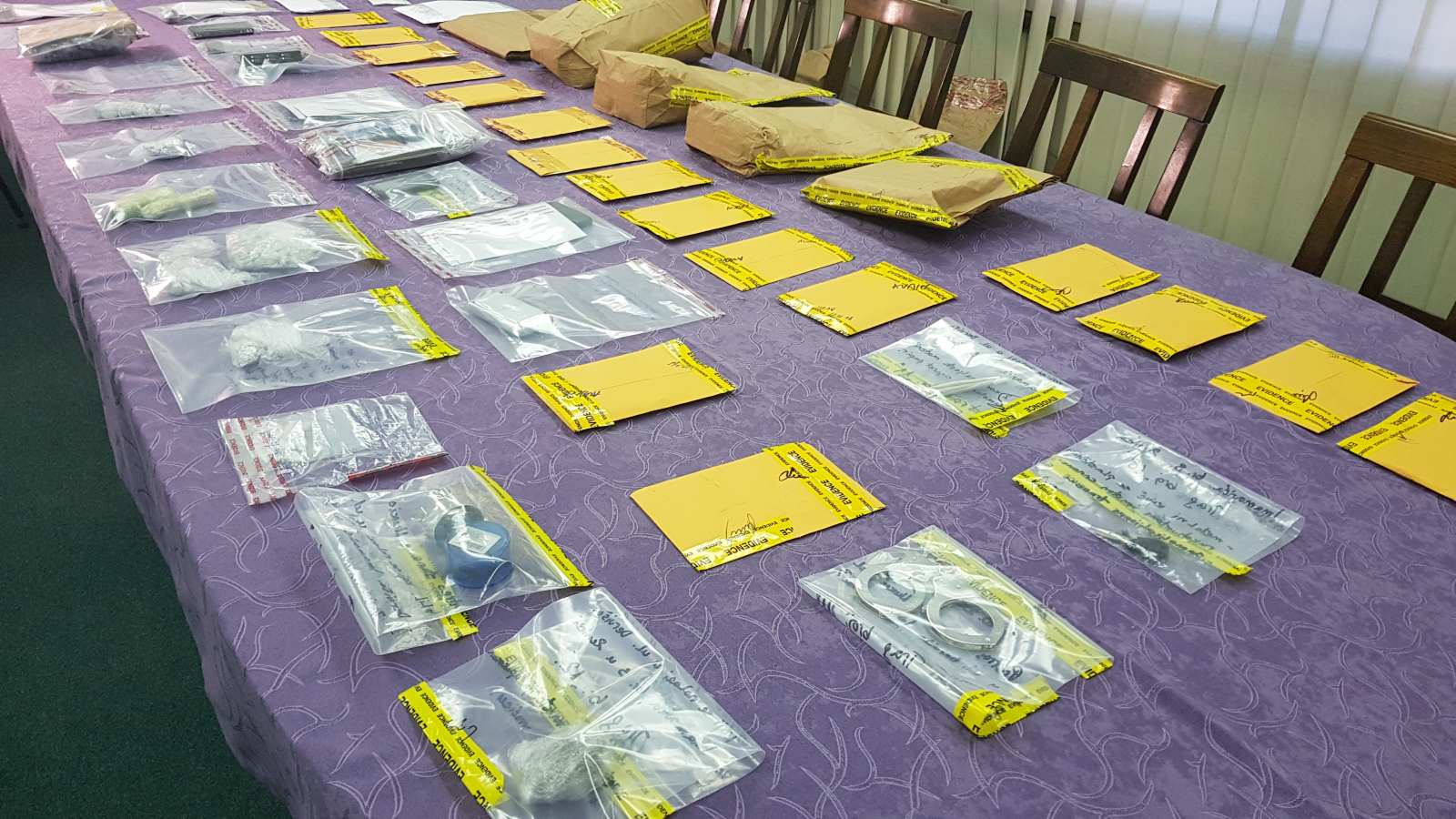 Izvršenim pretresima pronađena je određena količina opojne droge (marihuane, heroina i kokaina) namjenjene za uličnu prodaju, koja će biti predmet potrebnih vještačenja i mjerenja, nekoliko pribora za konzumaciju droga, veći broj mobilnih telefonskih aparata, digitalne vage za precizna mjerenja, veća količina tableta sa psihoaktivnim komponentama, pancirni prsluk, ručna bomba i drugi nedozovoljeni predmeti.