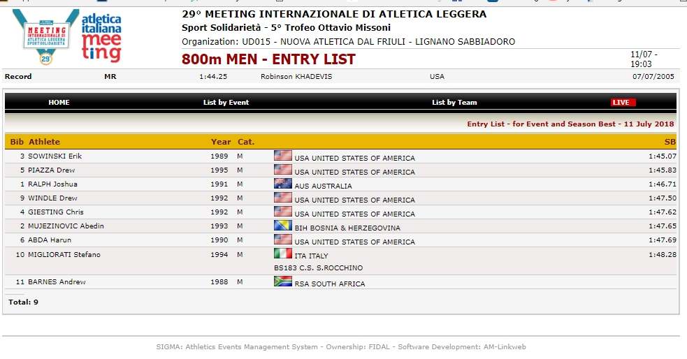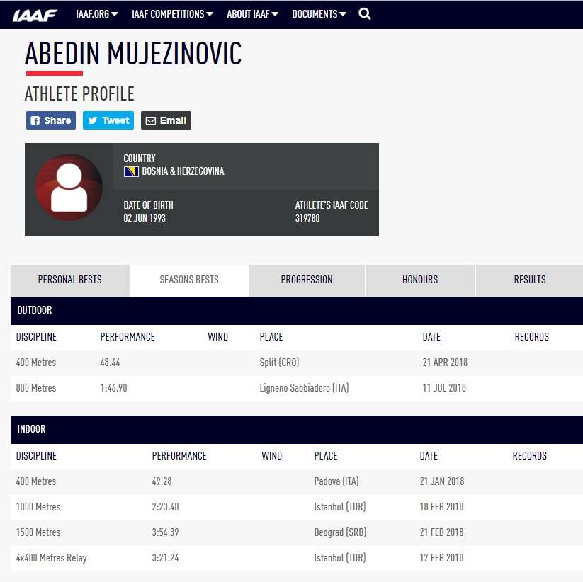 Podsjećamo, Abedinov lični rekord na 800 metara na otvorenom postignut je prije nešto više od godine, 7. jula 2017., u italijanskom gradiću Nembro 1:46.38. Pogledajte snimak utrke: