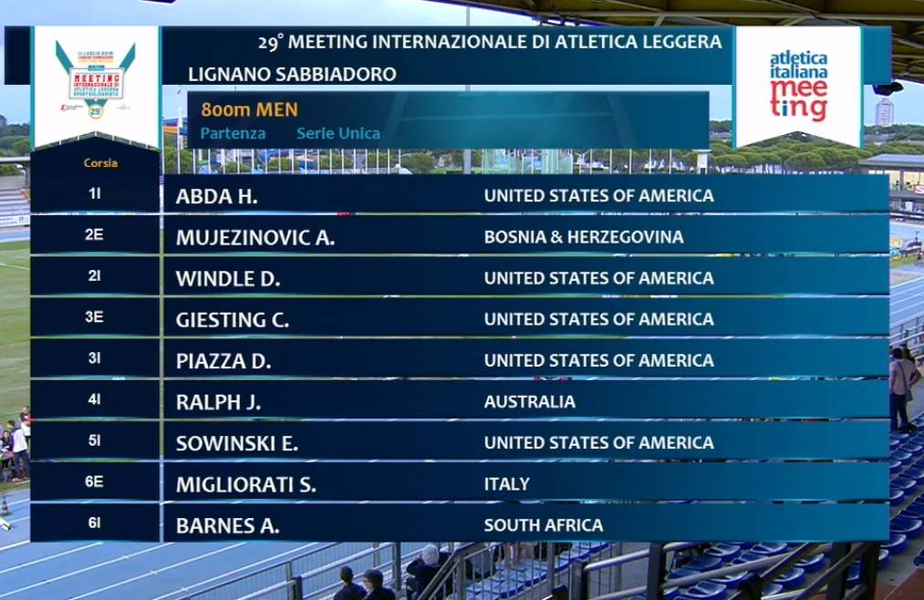 Nekoliko svjetskih i evropskih šampiona, te vrlo jaka konkurencija, ali prije svega forma u usponu i prijegorni rad našeg atletičara uveliko su pomogli sjajnom rezultatu od 1.46.90. Evo i cjelokupnih rezultata trke u kojoj je Abedin, u izjednačenom finišu, u kojem je svih osam takmičara “stalo” unutar nešto više od sekunde, zauzeo petu poziciju – 800m