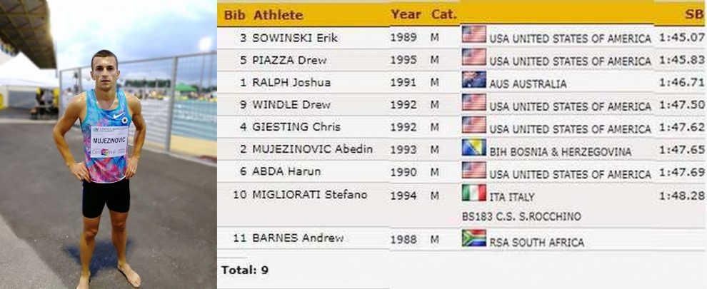 Član Atletskog kluba Zenica Abedin Mujezinović još jednom je potvrdio normu i vrijeme potrebno za učešće na Evropskom prvenstvu u Berlinu. Abedin je istrčao svoje najbolje ovogodišnje vrijeme na 800 metara vani, tokom učešća na 29. atletskom mitingu “Sport Solidarietà”