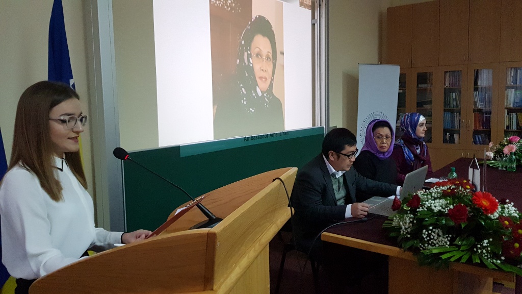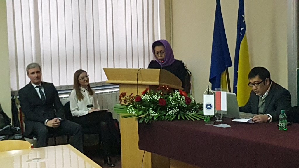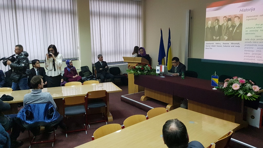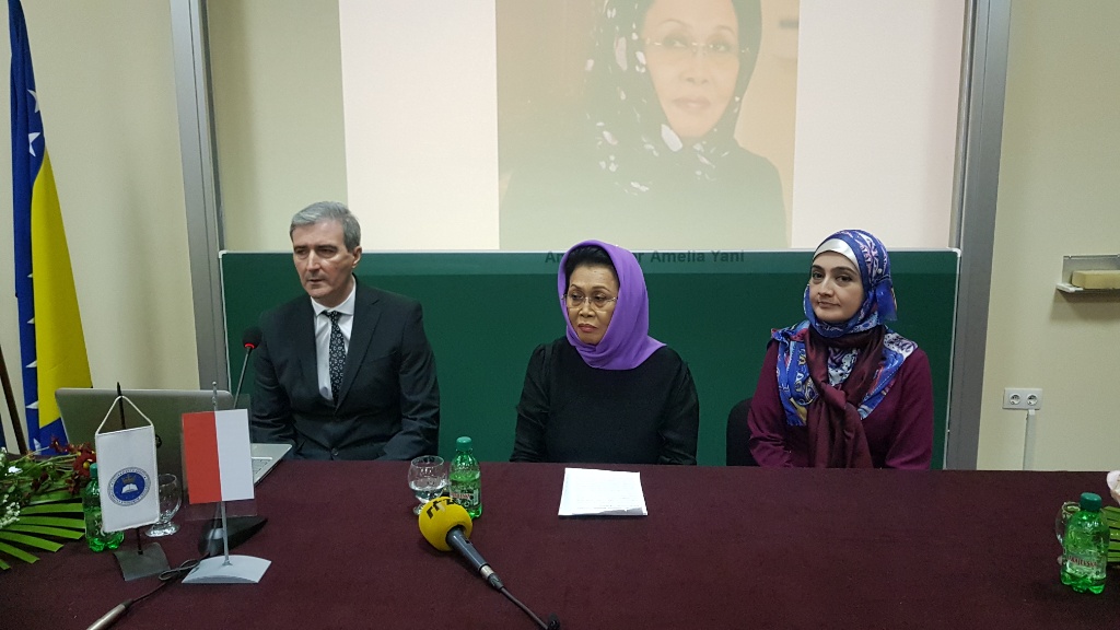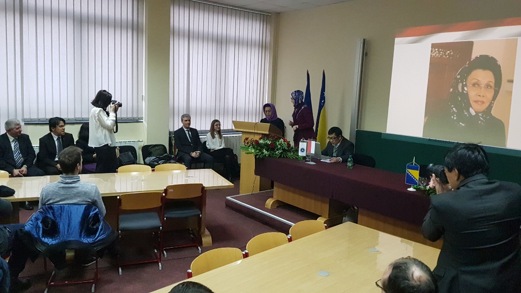 Nj.E. gđa Amelia Achmad Yani i saradnik Febry Elsafrino sastali su se sa prof.dr.sc. Damirom Kukićem, rektorom Univerziteta u Zenici, a nakon toga ambasadorica je održala predavanje studentima na Ekonomskom fakultetu Univerziteta u Zenici na temu “Forward looking Indonesia Development in Economic, Culture and Tourism”.