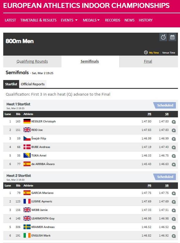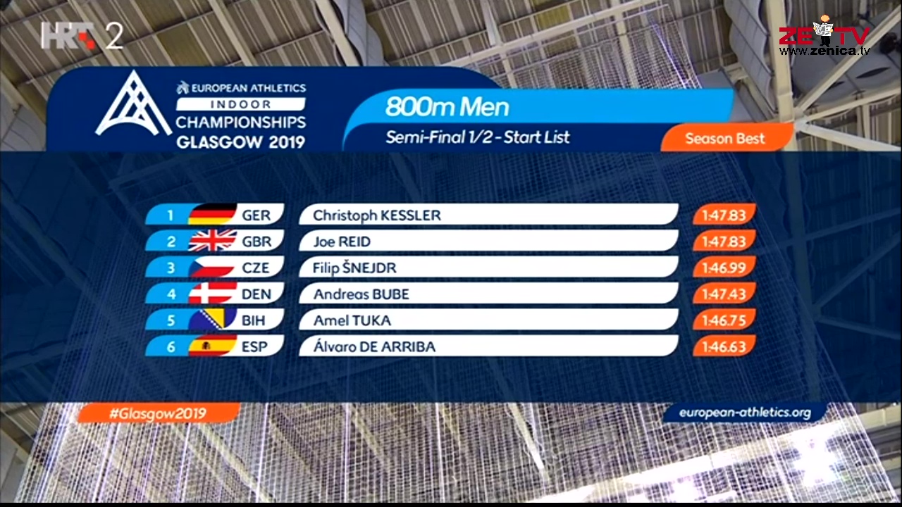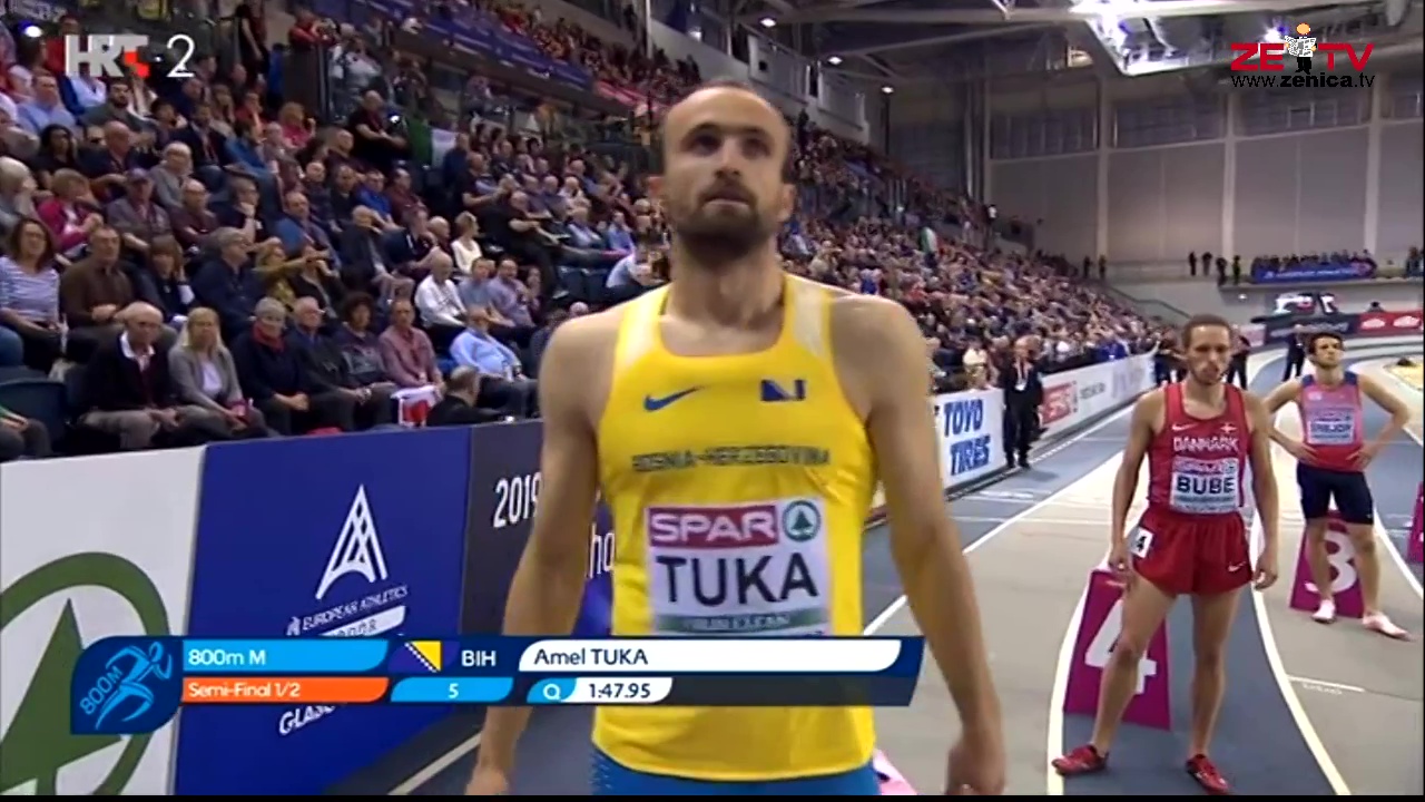VIDEO+FOTO: Amel Tuka sa 1.50.41 treći u polufinalu, plasirao se u finale dvoranskog Evropskog atletskog prvenstva – Najbolji bosanskohercegovački atletičar, naš sugrađanin i član AK Zenica Amel Tuka večeras je uspio u polufinalu utrke na 800 metara na Evropskom dvoranskom prvenstvu u Glasgowu da izbori finale, koje će trčati u nedjelju uvečer u borbi za jednu od medalja ili što bolji plasman. Amel je sa 1.50,41 bio treći, što je bilo dovoljno za finale.