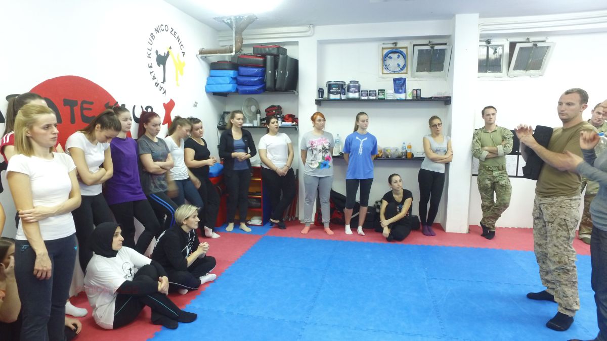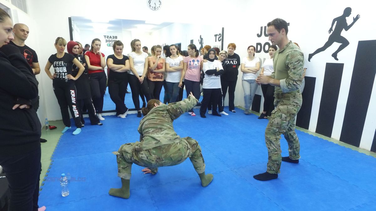 Video+foto: američki specijalci podučavali Zeničanke tehnikama samoodbrane – Večeras (ponedjeljak) je na zeničkoj Krav Maga akademija održan trening samoodbrane za žene koji su vodili specijalci američkih snaga Navy Seals (Mornaričke foke) i Green Berets (Zelene beretke).