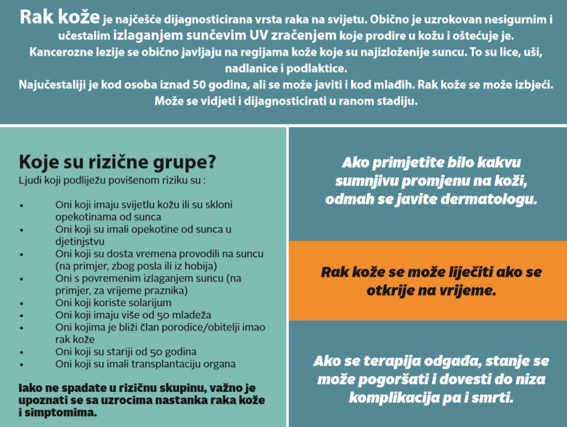 POTREBNO JE ZNATI: Zbog nepromišljenog ponašanja na suncu, štetnih posljedica pretjeranog izlaganja UV zračenju na zdravlje, kao i važnosti pregleda mladeža, te zbog činjenice da je melanom, kojeg često nazivaju tihim ubicom, najzloćudniji tumor kože.