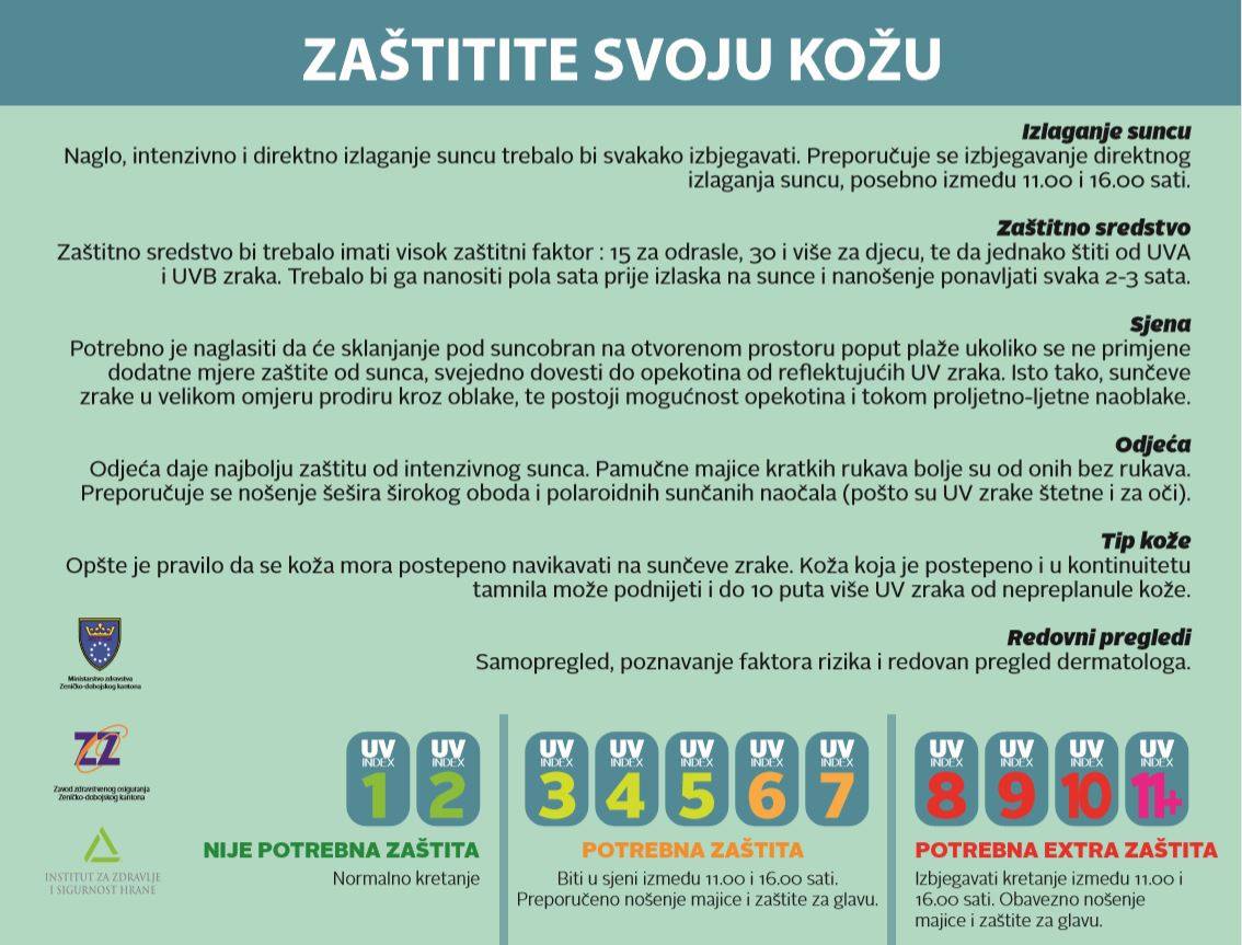 Institut za zdravlje i sigurnost hrane u saradnji sa Kantonalnom bolnicom Zenica, a povodom Svjetskog dana borbe protiv malignih melanoma kože organizuje besplatni pregled – skrining (screening) – na melanom kože.