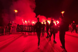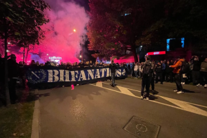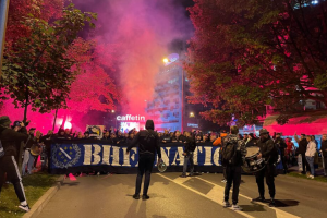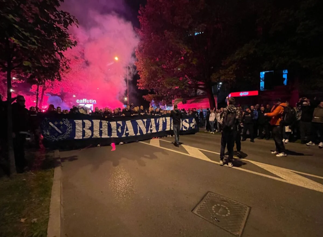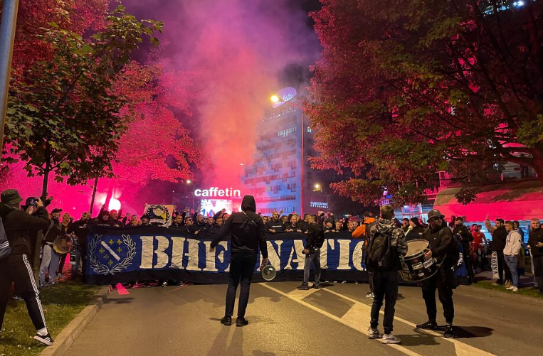 Prvo su vatrenu atmosferu priredili pripadnici navijačke grupe Ljuti Krajišnici, koji su spominjali ime Izeta Nanića, a onda je uslijedio korteo BH Fanaticosa.