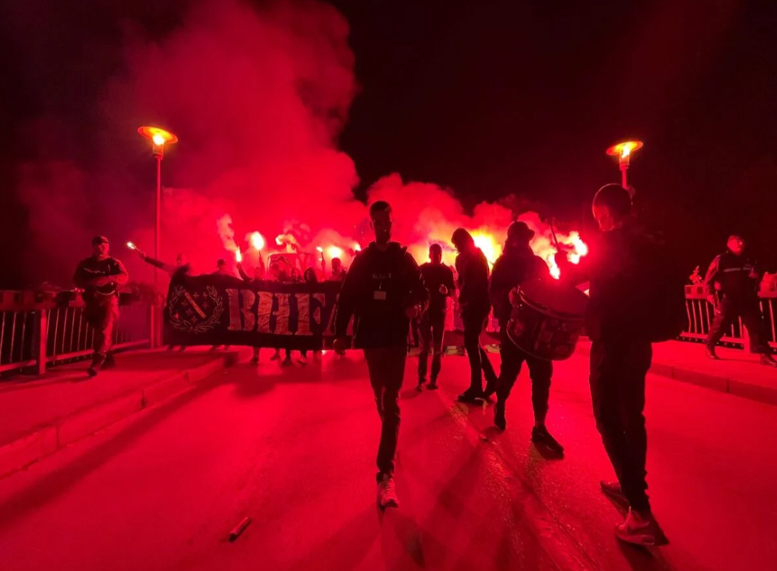 Uz baklje i pirotehnički šou, pjesma BH Fanaticosa odjekivala je Zenicom. Tokom navijanja BH Fanaticosa most u Zenici doslovno je “poskakivao” zajedno s navijačima. Nadamo se istoj atmosferi i tokom svih 90 minuta utakmice.