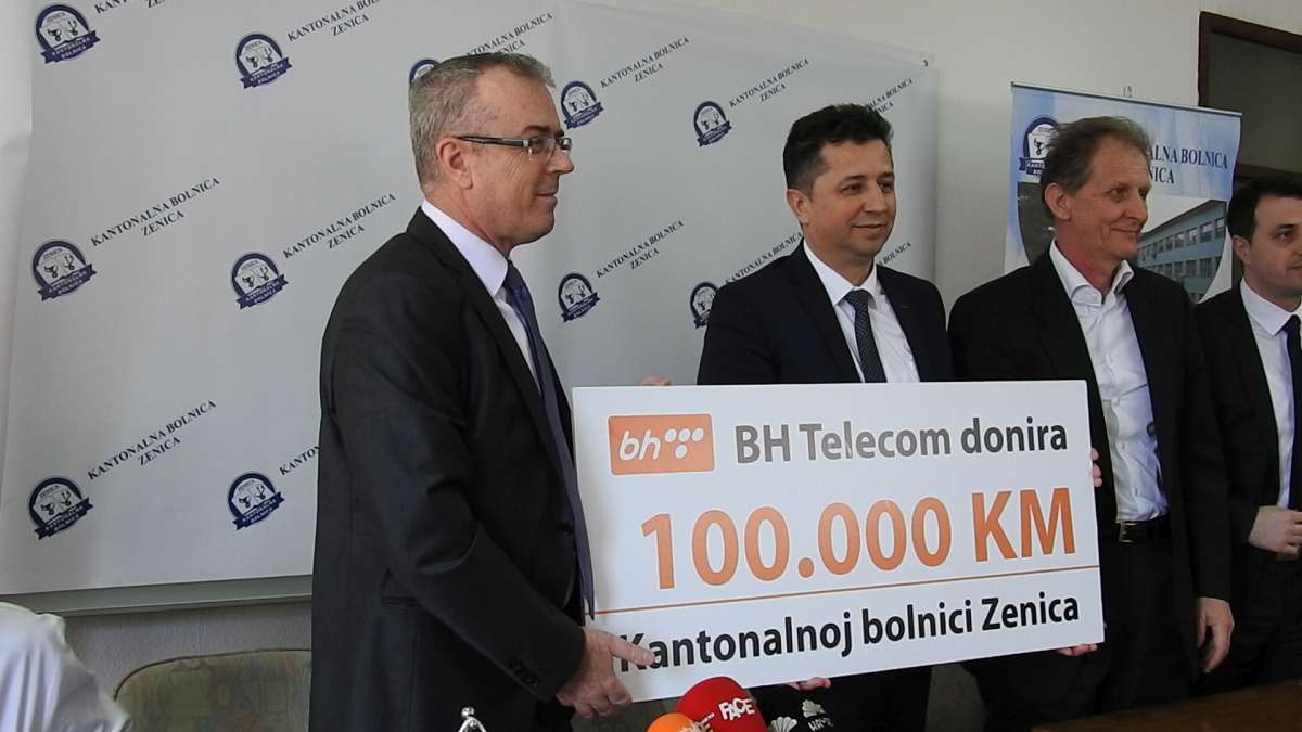 Današnju donaciju u iznosu od 100.000 KM direktoru Kantonalne bolnice Zenica uručio je direktor BH Telecoma Mirsad Zaimović.