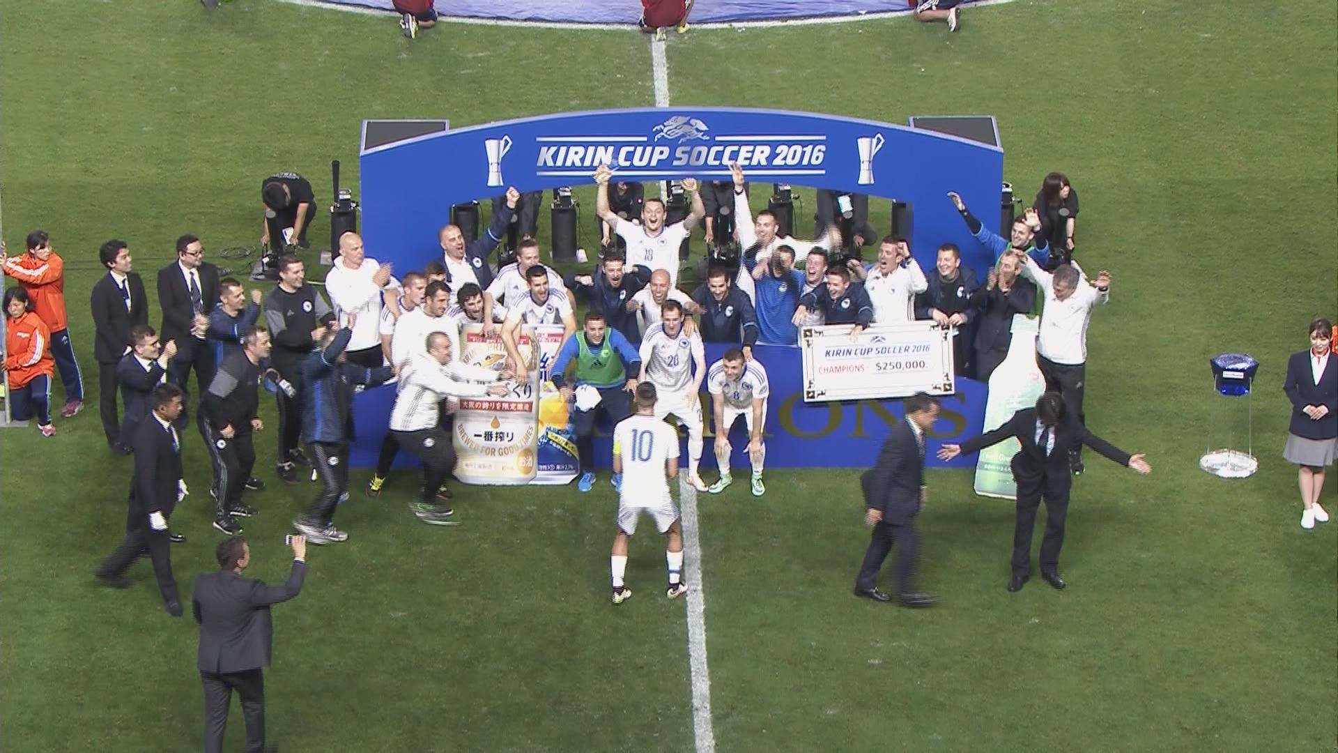 Reprezentacija Bosne i Hercegovine osvojila je Kirin Kup, turnir koji je održan u Zemlji izlazećeg sunca. U finalu su izabranici Mehmeda Baždarevića pobijedili selekciju Japana sa 2:1, a kao i u polufinalnom meču protiv Danske dvostruki strijelac je bio Milan Đurić.