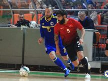VIDEO+FOTO: Bosna i Hercegovina se plasirala u glavnu rundu! Susreti trećeg kola grupe F preliminarne runde kvalifikacija za Svjetsko prvenstvo u futsalu odigrani su večeras u Gradskoj areni “Husejin Smajlović” u Zenici. Reprezentacija Bosne i Hercegovine pobijedila je Tursku rezultatom 7:2 i tako ostvarila plasman u glavnu kvalifikacionu rundu kao prva u grupi. Izabranici Ive Kreze do prednosti dolaze u 5’. Marijo Aladžić je proigrao Nerina Kahvedžića koji sa oko sedam metara loptu šalje u protivničku mrežu.