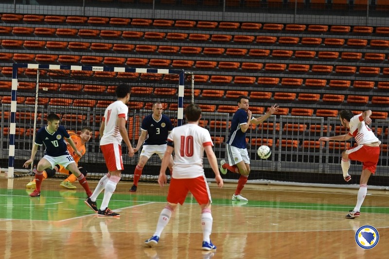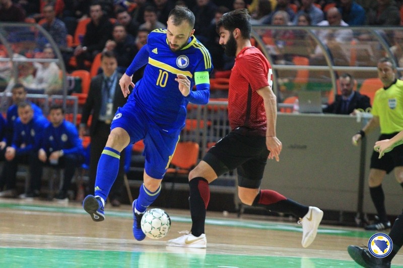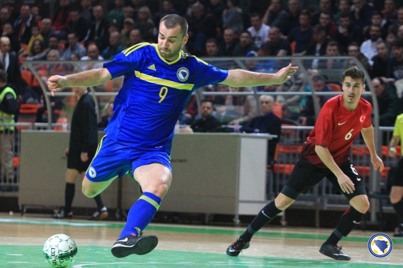 VIDEO+FOTO: Bosna i Hercegovina se plasirala u glavnu rundu! Susreti trećeg kola grupe F preliminarne runde kvalifikacija za Svjetsko prvenstvo u futsalu odigrani su večeras u Gradskoj areni “Husejin Smajlović” u Zenici. Reprezentacija Bosne i Hercegovine pobijedila je Tursku rezultatom 7:2 i tako ostvarila plasman u glavnu kvalifikacionu rundu kao prva u grupi. Izabranici Ive Kreze do prednosti dolaze u 5’. Marijo Aladžić je proigrao Nerina Kahvedžića koji sa oko sedam metara loptu šalje u protivničku mrežu.