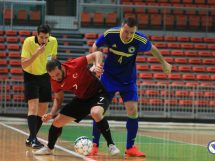 VIDEO+FOTO: Bosna i Hercegovina se plasirala u glavnu rundu! Susreti trećeg kola grupe F preliminarne runde kvalifikacija za Svjetsko prvenstvo u futsalu odigrani su večeras u Gradskoj areni “Husejin Smajlović” u Zenici. Reprezentacija Bosne i Hercegovine pobijedila je Tursku rezultatom 7:2 i tako ostvarila plasman u glavnu kvalifikacionu rundu kao prva u grupi. Izabranici Ive Kreze do prednosti dolaze u 5’. Marijo Aladžić je proigrao Nerina Kahvedžića koji sa oko sedam metara loptu šalje u protivničku mrežu.