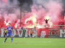 Sedam minuta kasnije najbolja šansa za goste u prvom poluvremenu. Eliomar se našao sam na 11 metara od gola Čelika, ali neometan loptu šalje preko gola.