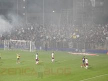 U zaista sjajnoj atmosferi pred oko 10 000 gledalaca igrači Čelika i Sarajeva su odigrali susret bez pobjednika i golova. Već na samom početku susreta (3′ minuta) dolazi do prekida zbog upotrebe pirotehnike (topovski udar) gostujućih navijača. U nastavku susreta vidjeli smo mirnu igru na obe strane, a prvu šansu su imali domaćini nakon sjajnog proigravanja napadač Čelika Dilaver je istrčao u prazan prostor ali bliži lopti je bio golman Kovačević koji loptu izbacuje van igre. Na prvu šansu Sarajeva se čekalo do 16 minute kada Rahmanović šutira sa 17 metara pored gola. Nakon prilike Sarajeva dolazi do nemilih scena na tribinama gdje su gostujući navijači zbog upotrebe pirotehnike primorali Grbića da prekine susret. Prekid je trajao oko dvadeset minuta nakon kojeg je nastavljen susret.