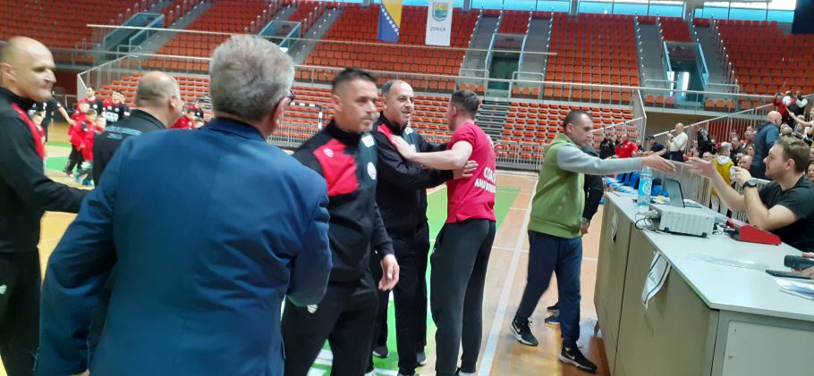 (Službemo lice Vladimir Zeljko, trener Banjamin Čeljo, Ago Grabić, Dženan Dedić);
