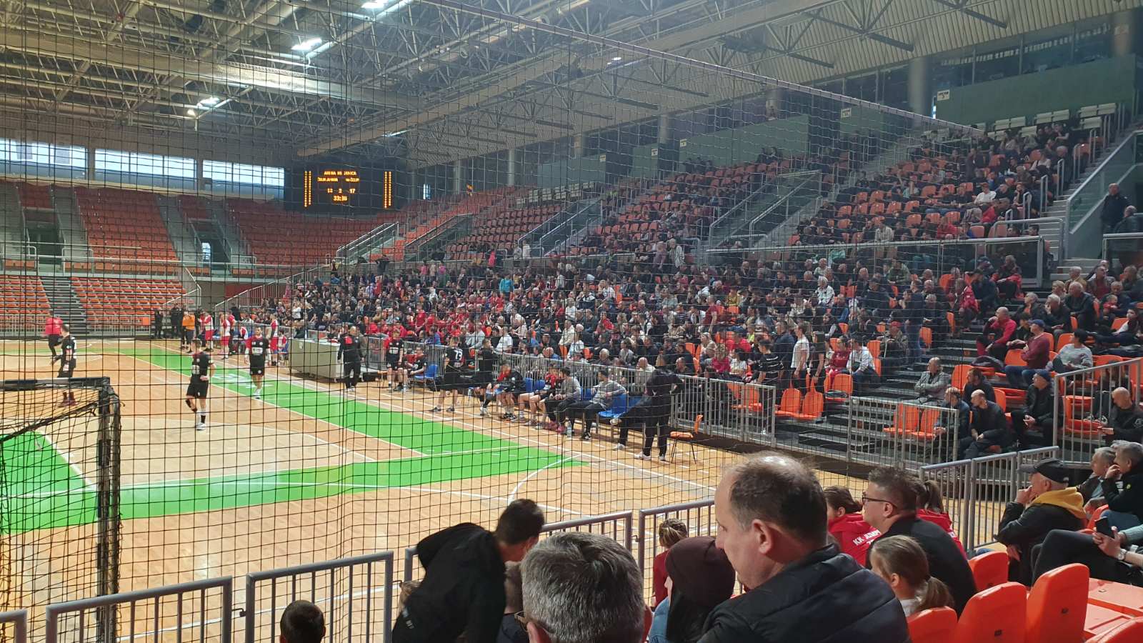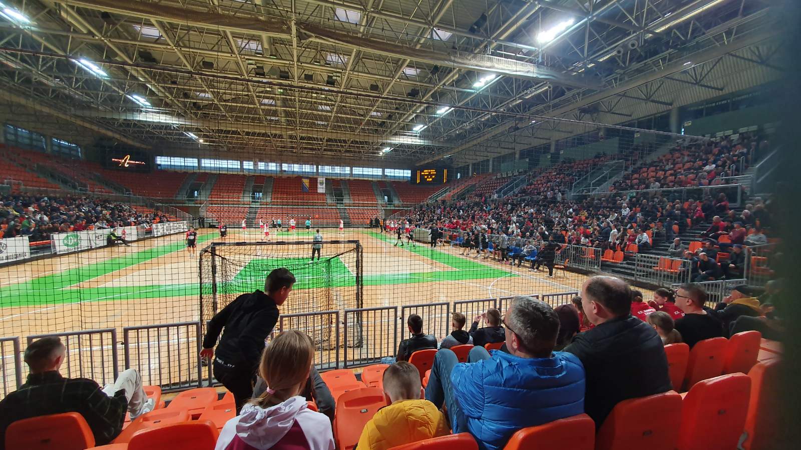 Pravi rukometni praznik danas u Zenici privukao je veliki broj navijača u zeničku Arenu, koji su mogli uživati u sjajnom rukometu, koji su im priredili današnji akteri. Čelik Junior bolje otvara meč sa 3:0, te su vodili do 16. minute sa dva do tri gola razlike, ali gosti onda sjajnom odbranom i brzim kontrama dolaze prvi puta u vodstvo 10:11. Nakon toga ponovo Čelik Junior zahvaljujući sjajnom golmanu Čelji, te Pašaliću u napadu dolazi do prednosti, koju su zadržali do poluvremena. Bilježimo i šest puta neriješen rezultat u prvom poluvremenu. Na odmor se otišlo pri rezultatu 16:14 za Čelik Junior.